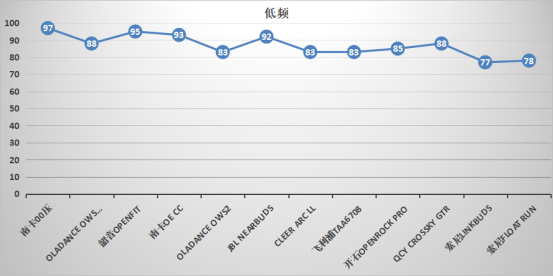第一档:韶音openfit、南卡00压、JBL Nearbuds、南卡OE CC耳机低频部分表现强劲有力,低频量感十足。