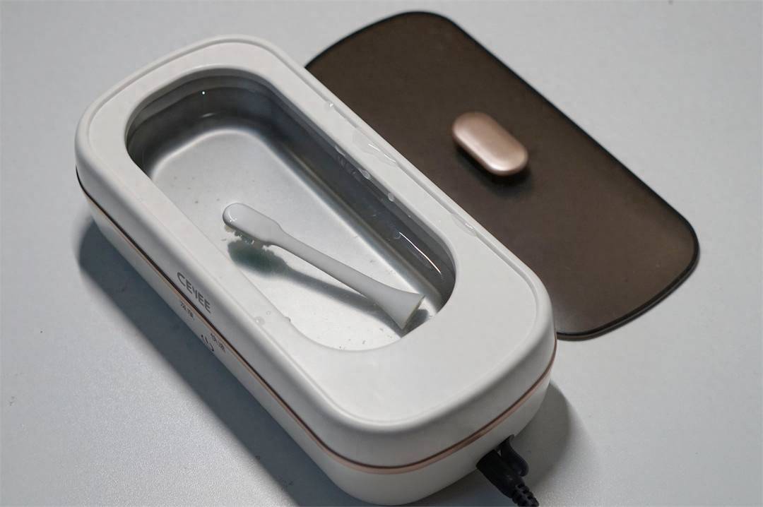 希亦CG声波清洗机工作时会产生一定的噪音,声音不大,并不会影响到我。清洁时,我会拿出手机刷视频,几分钟一下子就过去了。除了清洁眼镜,我还清洗了电动牙刷刷头,污垢去除了感觉刷牙后口气也变得更清新了。