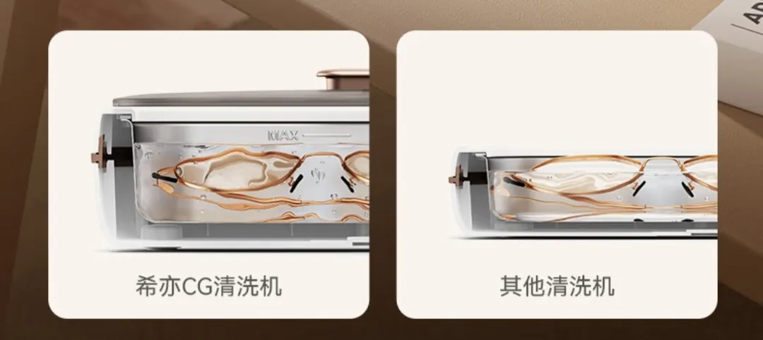 相比于普通清洁机,希亦CG超声波清洁机动力更强,清洁效果更好且用起来也更安全。