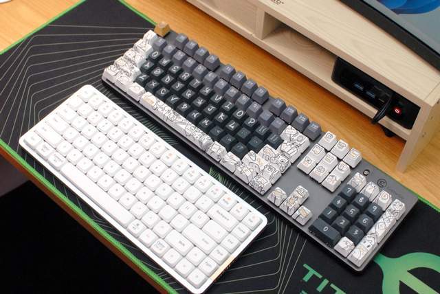 两款键盘的高矮对比,Lofree洛斐小顺高度仅有标准键盘的三分之二,“矮”得很明显,有木有?