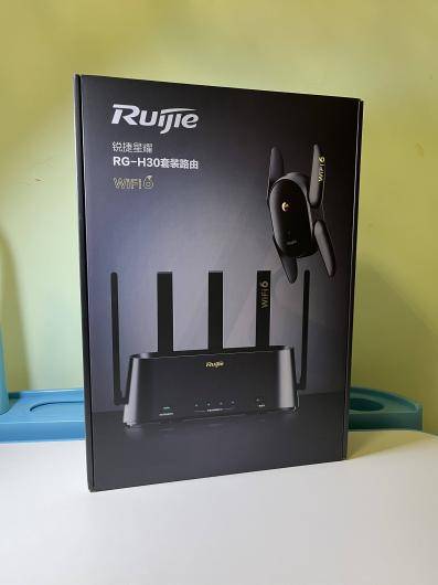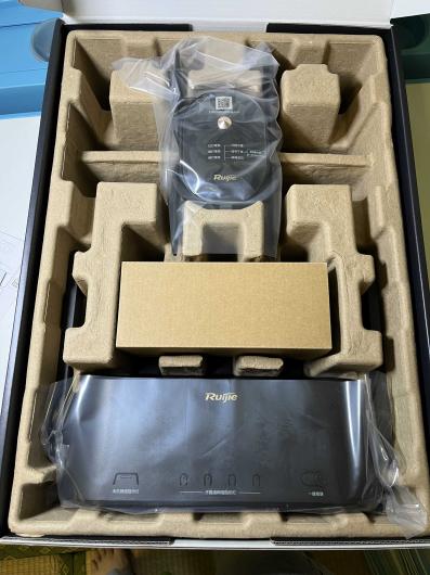 包装盒子很大,打开以后可以看到产品被裹在厚厚的防护壳里,感觉被保护的很好。锐捷的路由器一直口碑不错,同事看到我拆包装都过来围观。
