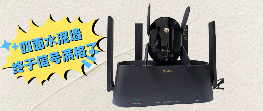 搬入现在的家已经有九年了,家里一直用的联通千兆光纤,入户网速绝对能在各家网络里的排第一。但无奈由于房子质量太好(主要是钢筋混凝土的标号比较高),户型又比较奇特(飞机型),离客厅光猫路由较远的卧室除了小小的门窗,四面都是承重墙,Wifi信号一直徘徊在2-3格,躺在床上刷剧成了奢望,队友想玩手游那就只能客厅沙发了。九年间,路由器换了四五种,也尝试过wifi转接器,但效果都不理想,甚至wifi转接器本身都显示信号弱。没想到这次的锐捷蜂鸟旗舰版将我从四面钢筋水泥的wifi禁锢中解救出来,终于可以躺在床上刷刷刷啦!