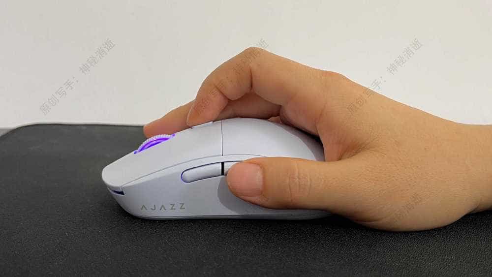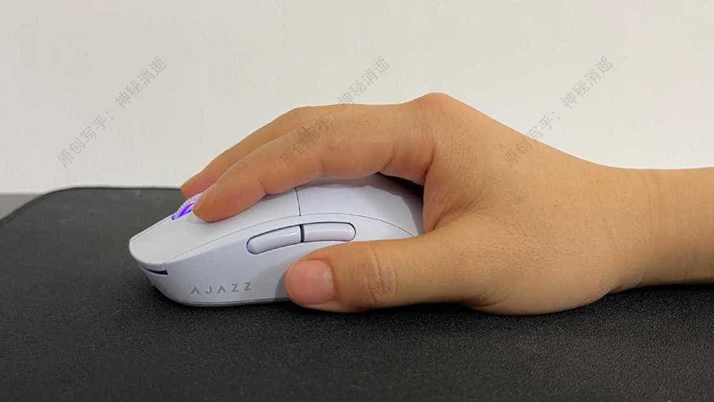 ▲笔者习惯使用右手抓握或者趴握等姿势来操控鼠标,掌心可将鼠标尾部囊括入内,获得紧密的贴合掌控持握感,拇指覆盖两个侧键,食指覆盖顶部DPI调节键,轻松点击发力。