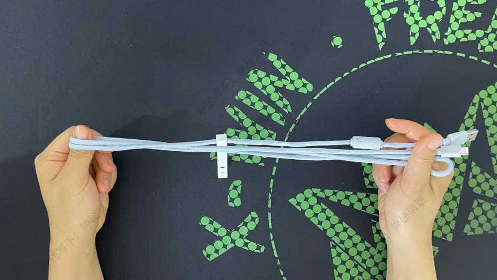 ▲原配的伞绳材质电源数据线兼具轻量化、牢固性和柔软性,能有效降低摩擦阻力减少鼠标线的拖拽感。