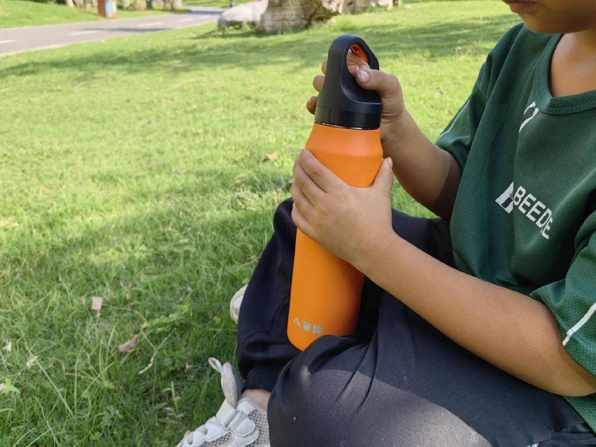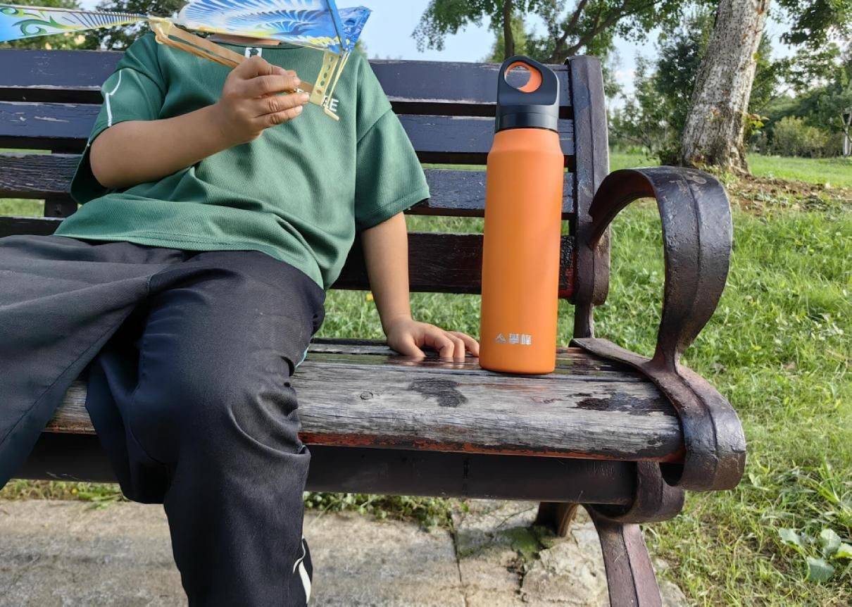 周末在家的时候,基本上娃都是跟着我,我时常会带着他在小区附近公园跑步,跑累了,他就在旁边草地上或者公园座椅上坐着休息一会。座椅上带有一定弧度,攀峰抗菌保温杯都能保持很好的稳定性,并没有因为弧度而滑动。