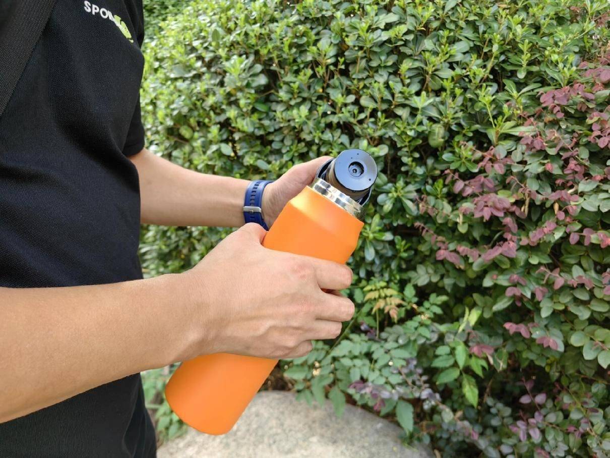 杯盖上还有透气小孔排气阀,避免了装入有气饮料时,开盖时饮料喷溅而出,防喷溅设计不仅能做到密封不漏,还无惧碳酸饮料。杯口的防漏盖设计即使在晃动的情况下也不会漏水,让我们在饮用杯内饮品的同时,也能更加放心。