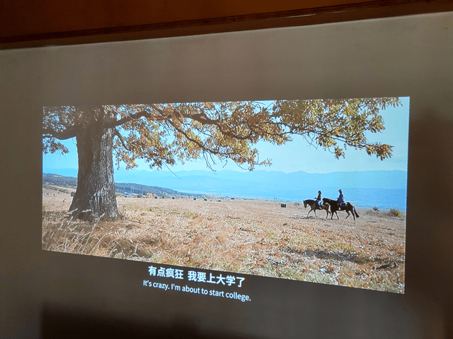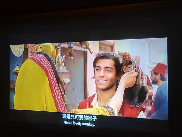 电影画面投射效果展示,万播Mini虽然只有720的分辨率,但是硬件支持1080P解码,亲测用了4K演示片进行播放也没问题,更高画质的内容可以带来更清晰细腻的显示效果。
