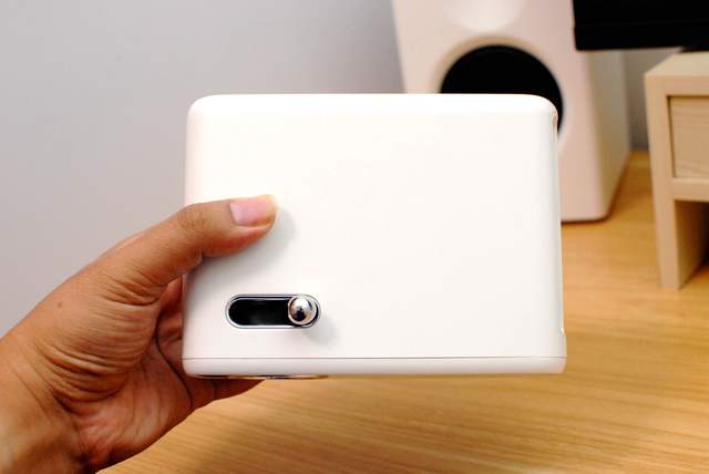 万播Mini的背面配备了立体声的音箱,3W独立功放音效无需外接其它设备就能感受影音所带来的震撼,亲测效果还算不错,不过有追求的朋友,也可以通过蓝牙音箱外接进行扩展。
