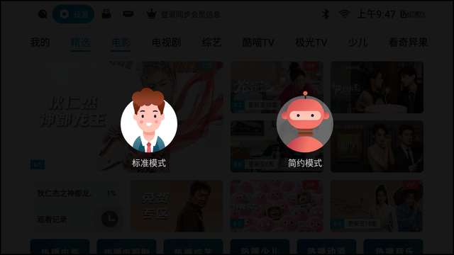 对了,为了适应不同家庭成员的使用,万播Mini还提供了两种界面,分别是标准模式和简约模式,标准模式前面已有所介绍,我们再来看看简约模式。