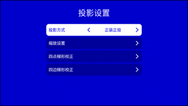 为了照顾小空间或者采用侧投的用户,万播Mini还提供了四点梯形画面校正以及四边梯形画面校正,让我们在任何环境下观影都能投出合适的画面。