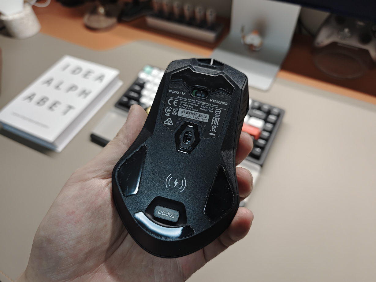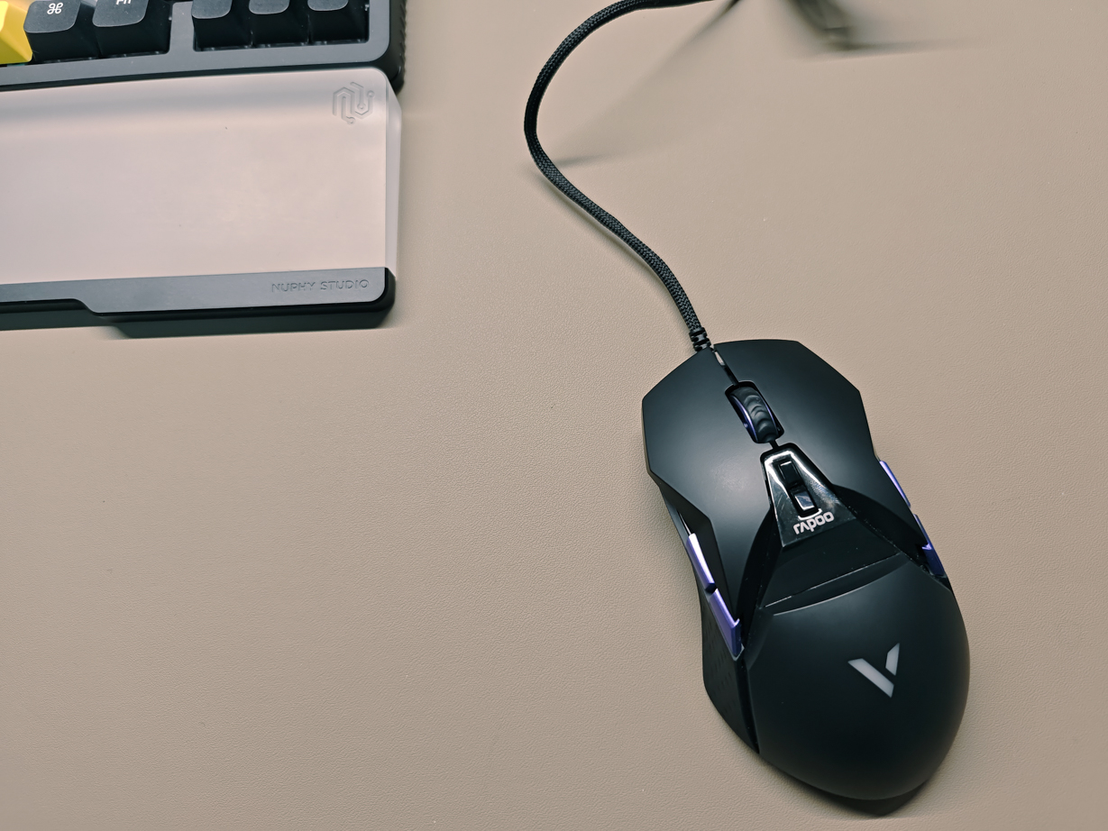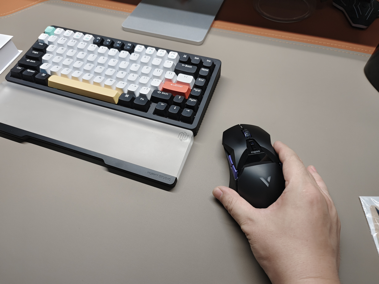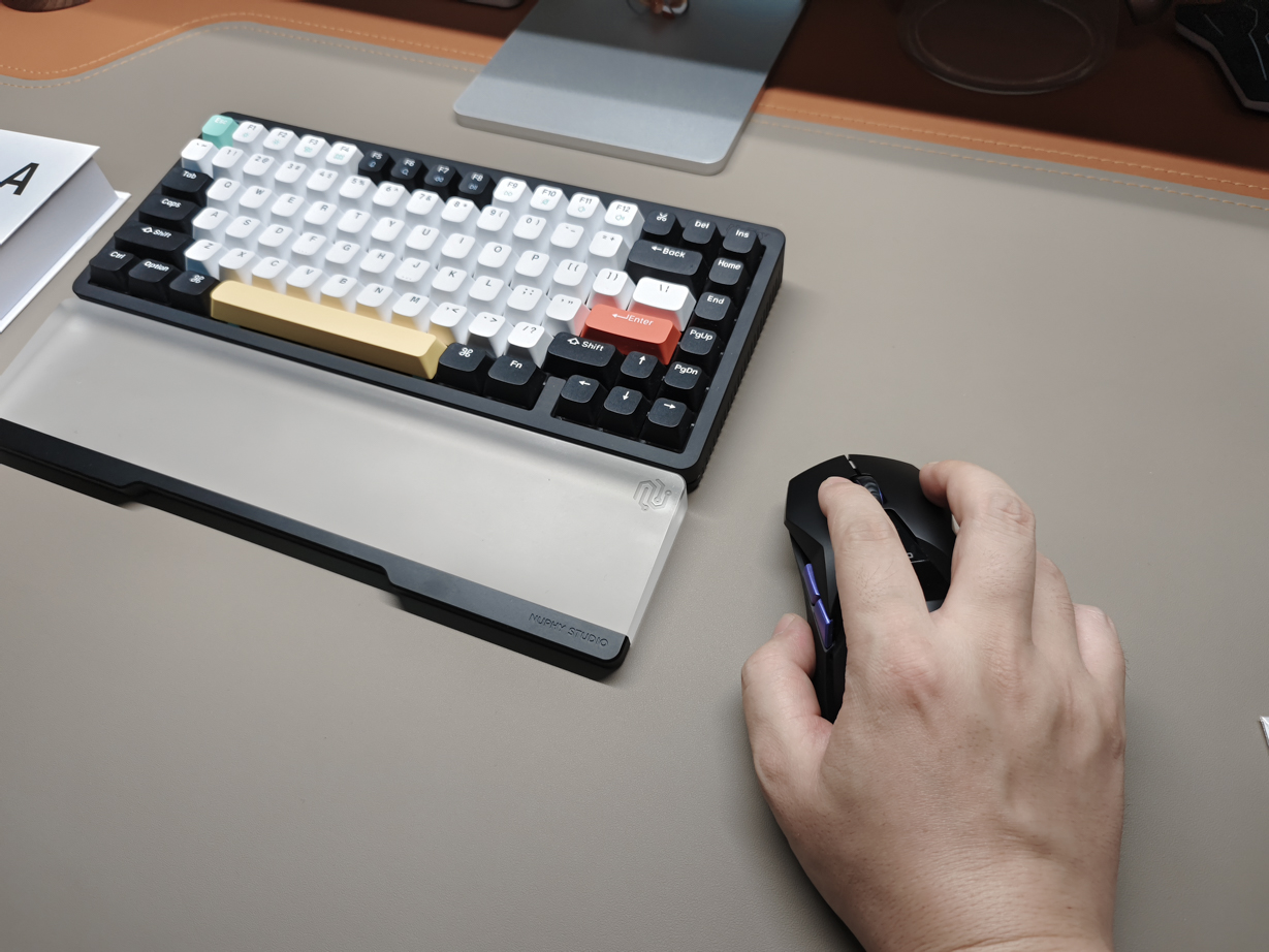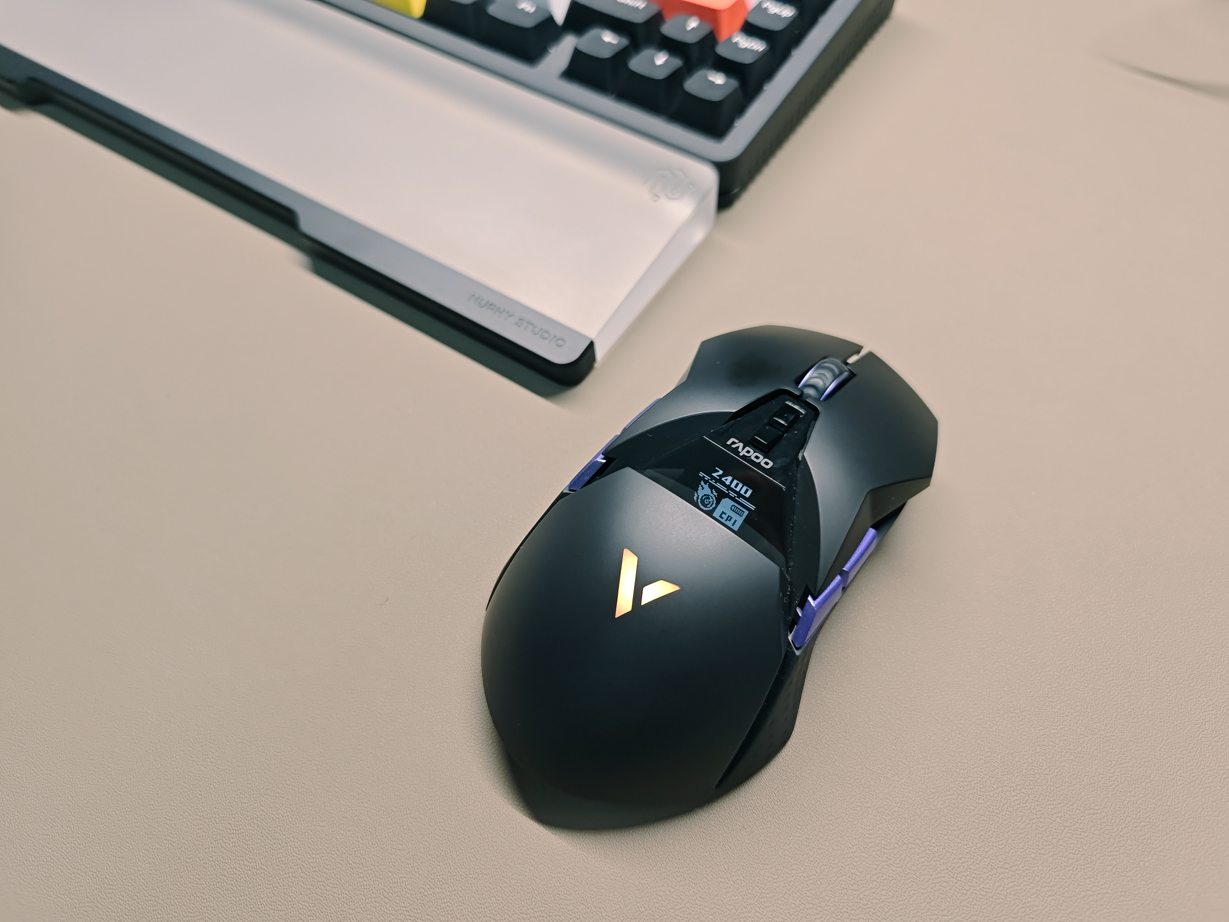 我本身比较推崇干净整洁的桌面,所以对于各种设备的线材秉着能省则省、能藏则藏的原则来搭配,VT950 Pro支持2.4G无线和Type-C有线两种连接方式,无线的好处是简洁无束缚但会有一定的响应延迟无法避免,有线就显得凌乱一点但响应高且可以保持充电。