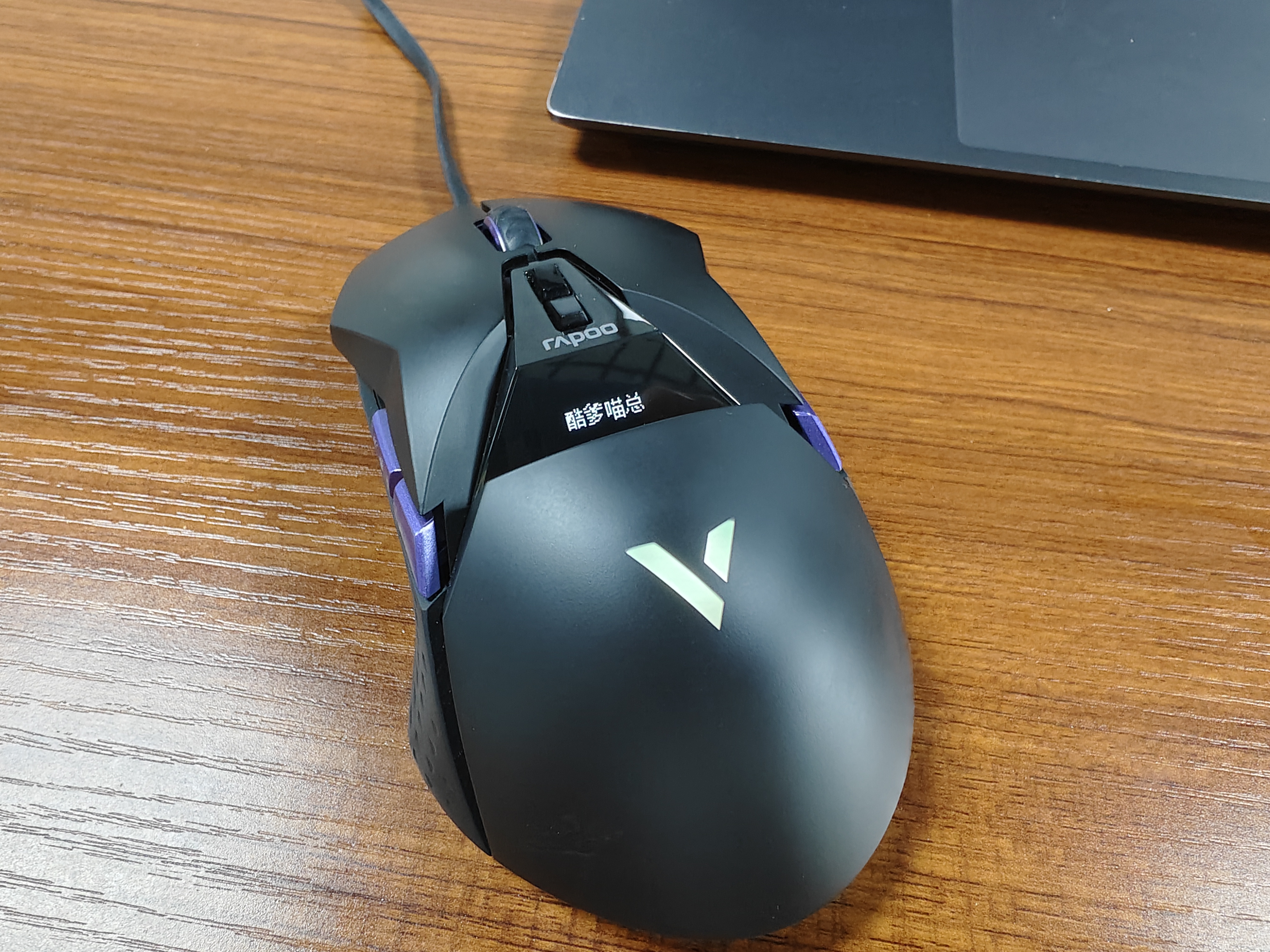 电竞怎么能少得了RGB呢?VT950 Pro把自己的Logo和1600万色的RGB灯合二为一,做了轻度的点缀设计,但是只要我握住鼠标就看不到灯了,不如把灯设计在前部位置会更实用。