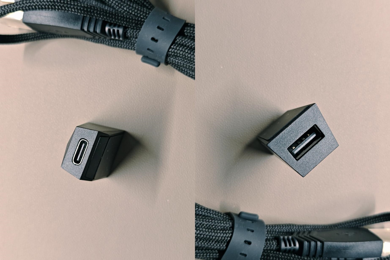 考虑到现在有些玩家用笔电的接口有限,附赠的Type-C转USB转换器就派上用场了。