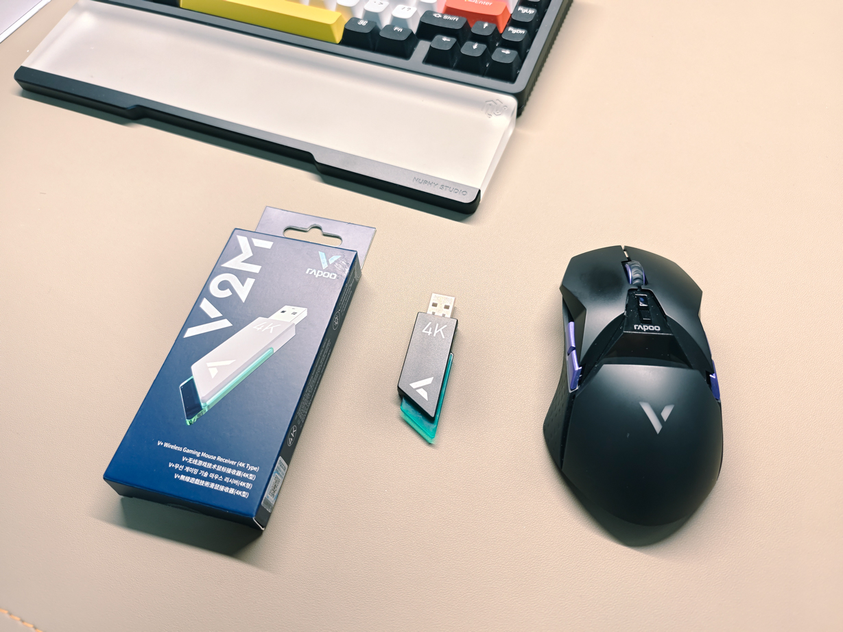 如果还想进一步提升响应和精准操控,建议搭配雷柏V2M 4K接收器,可以提供最高4000Hz的回报率,响应时效也可以低至0.25ms,几乎可以忽略延迟问题,尽情享受无线操控的乐趣。