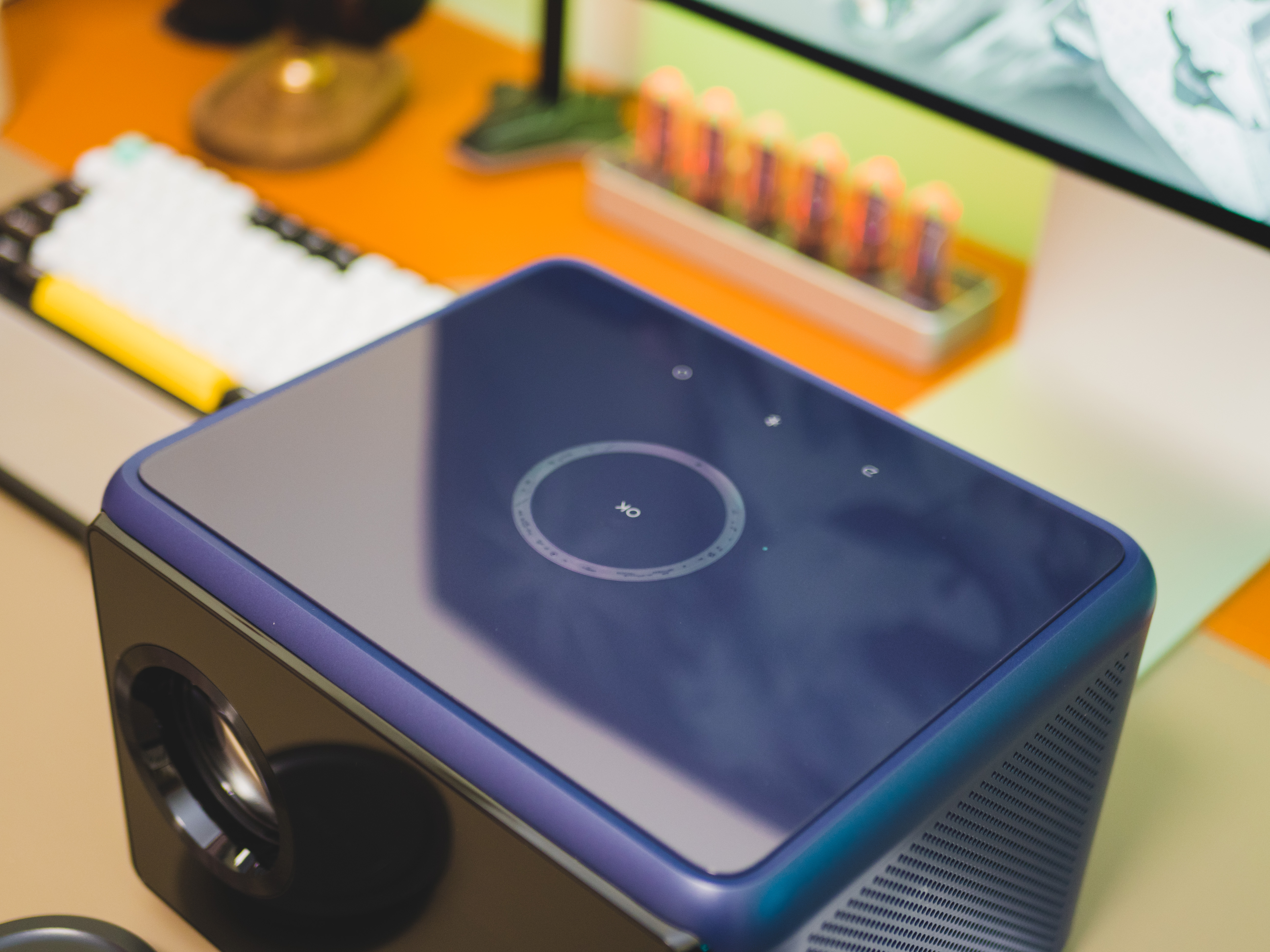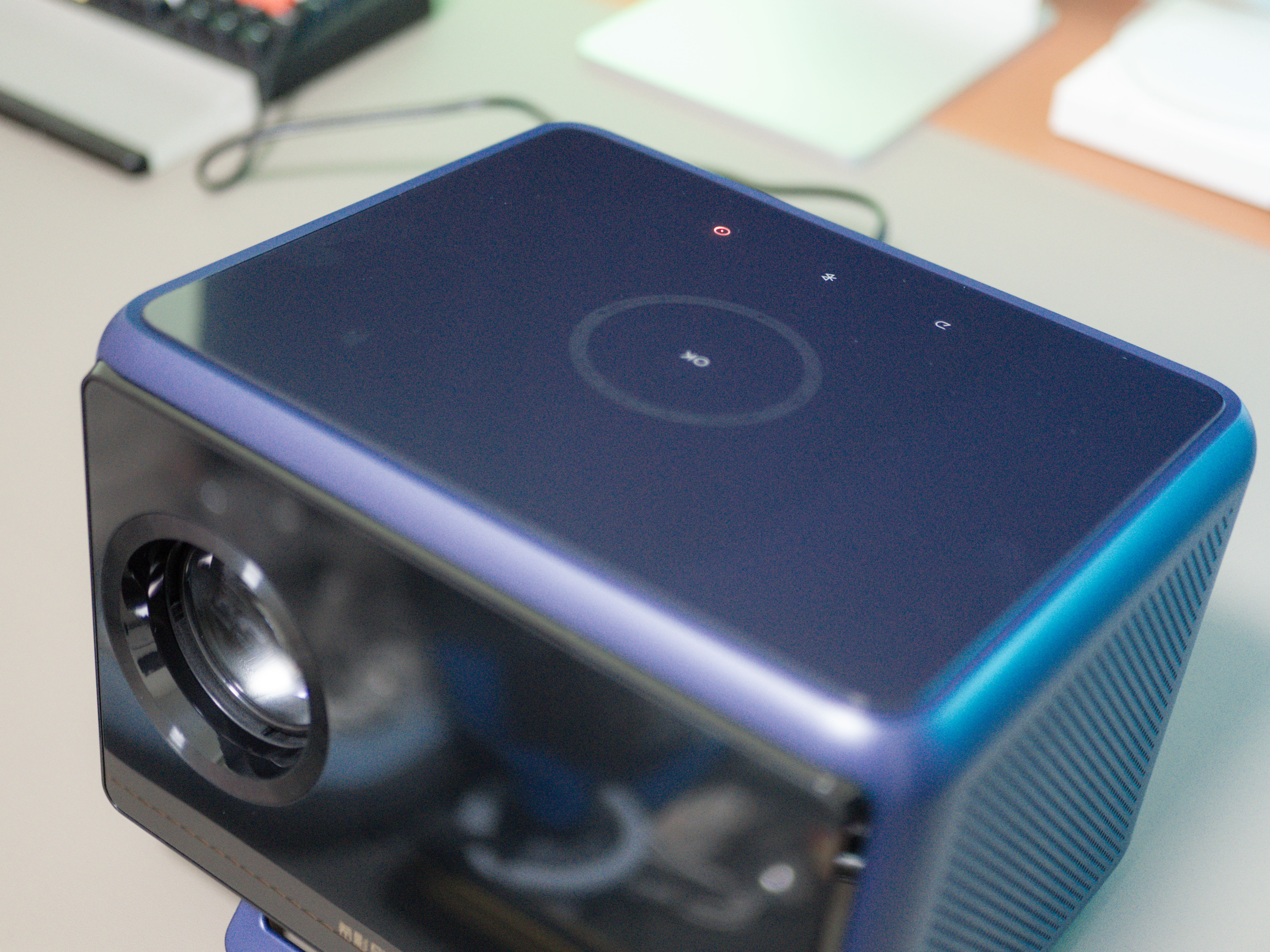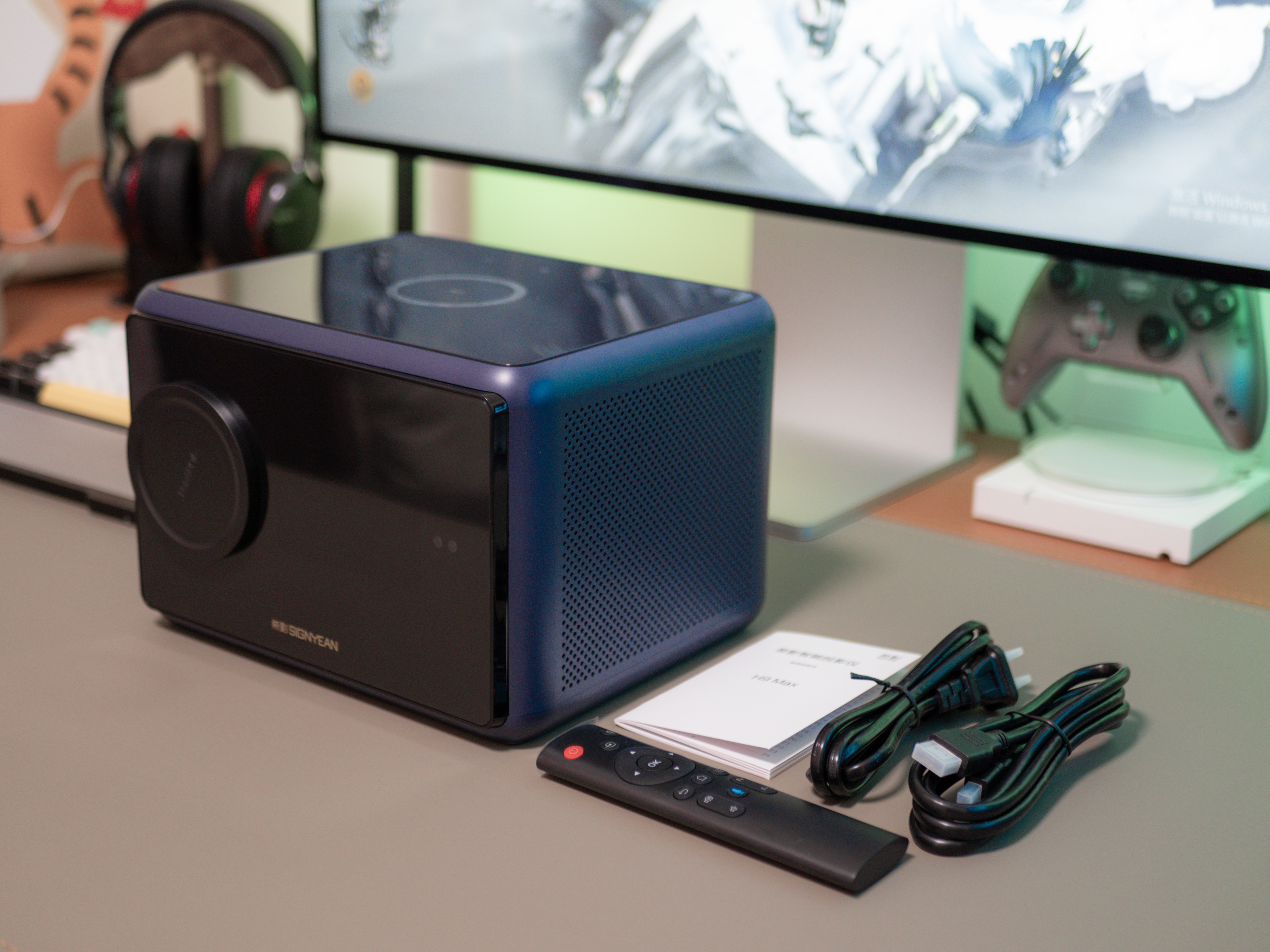 H9 Max给我的第一印象还是比较惊艳的,相比印象中的传统投影仪千篇一律的扁体造型,明显时尚了不少!不过黑色镜面部分虽然很酷,但是指纹、灰尘等痕迹也更明显,日常清理需要频繁且费心一些囖。