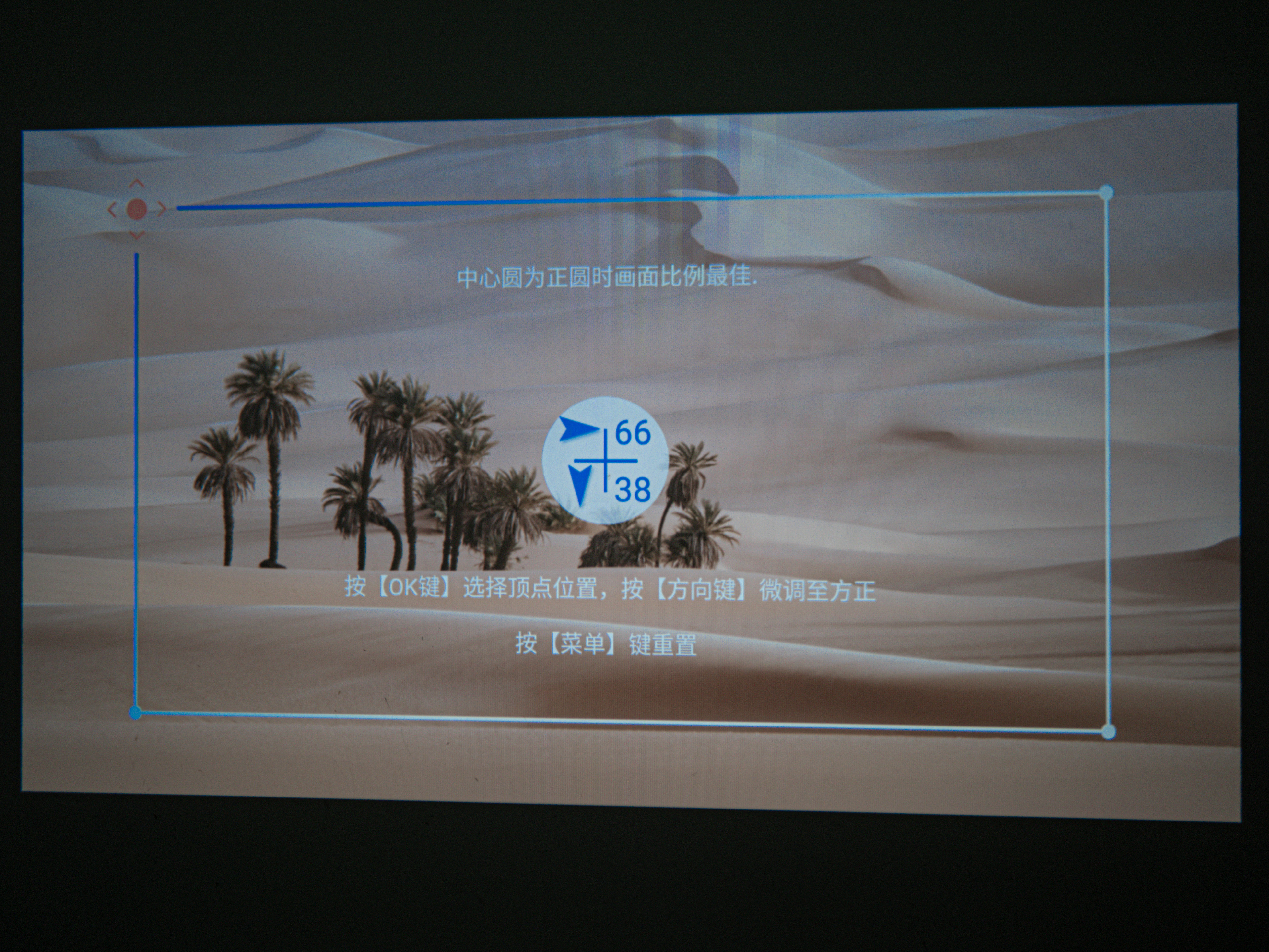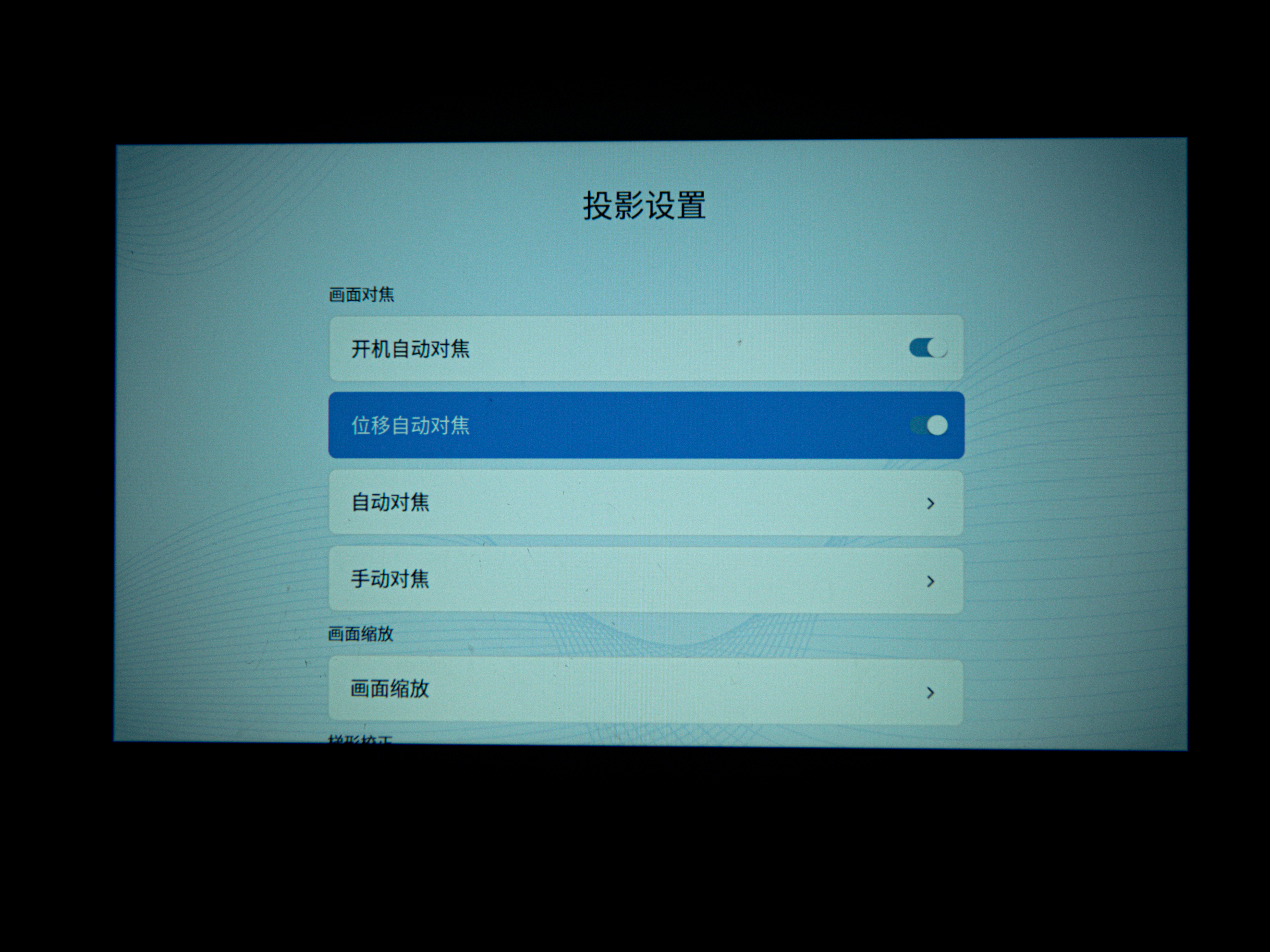 同样支持开机和位移自动矫正,比如支架垫高、非正对投影时,借助这个功能来将画面比例调整到正常状态,可以大大提高环境的适应能力。