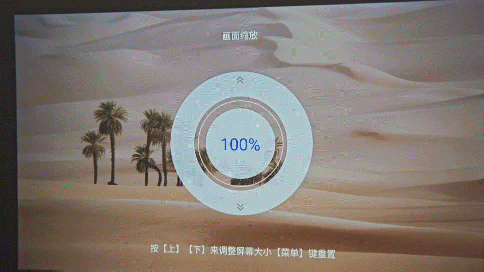当投影距离固定时(远大近小),为了得到最佳的观看画面,可以通过缩放比例来调整到满意的状态。