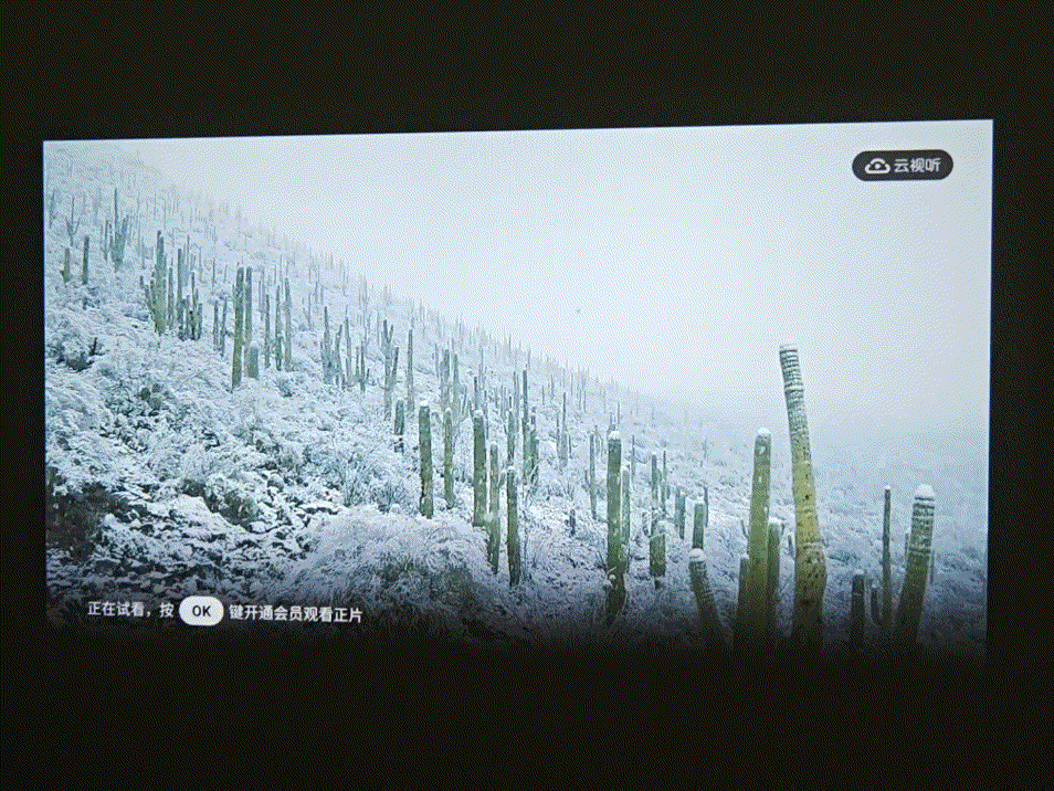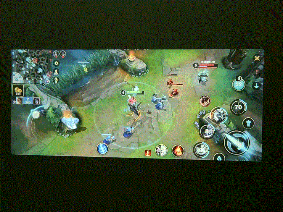 说实话,投影仪要想获得更好的观看体验,最好是搭配抗光幕布一起使用,但是如果预算有限,直接投影在平整的白色墙面也是可以,这里实测大部分情况下投影到墙面的画面亮度、色彩和饱和度都能打到正常观看的状态,但是遇到绿色和黄色画面的话,效果就会变得有点灾难,这是无法避免的。