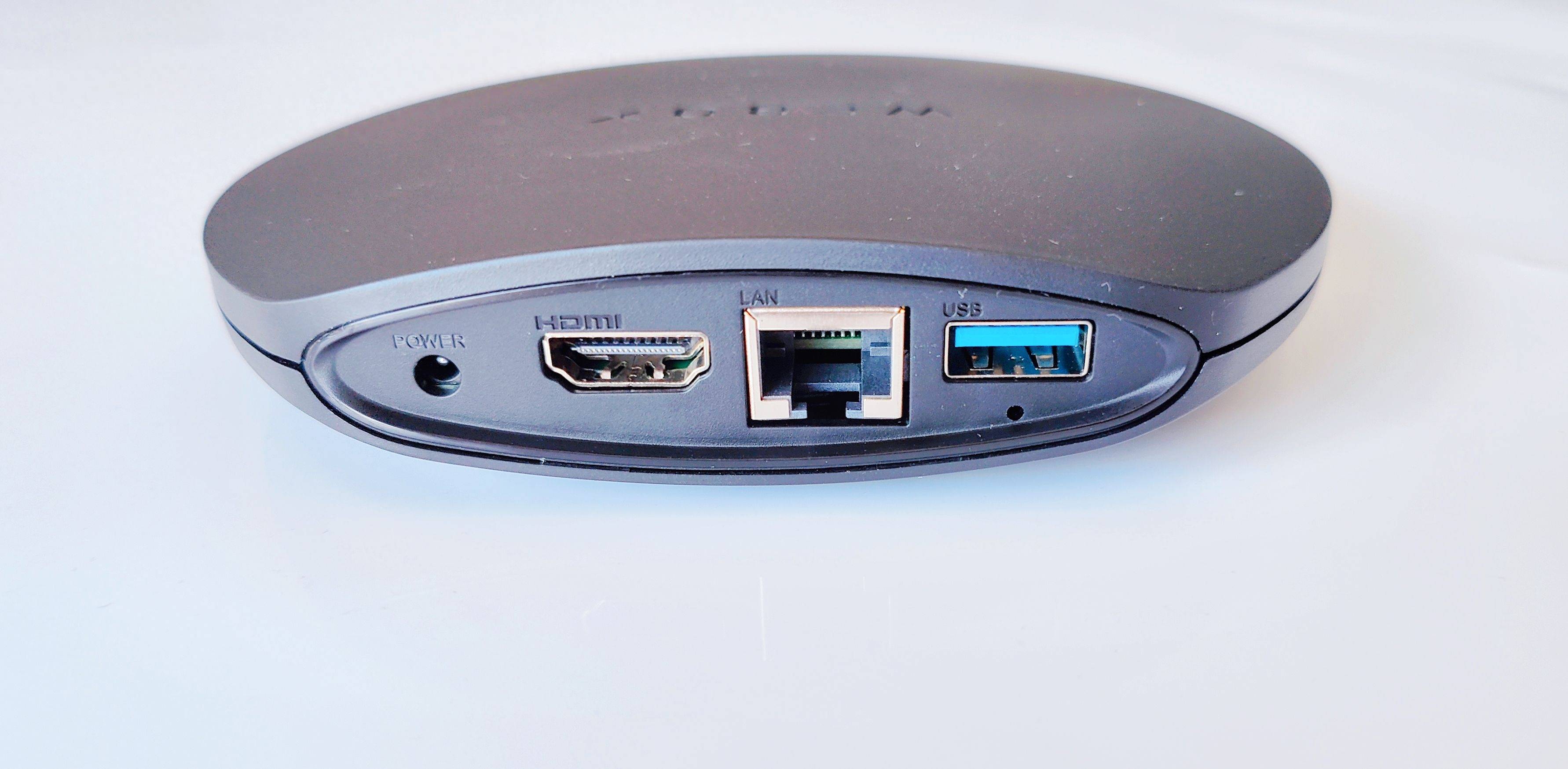 WE40S的侧面依然沿袭了经典的齿轮式的散热口设计,搭配整体飞碟造型,科技感十足。WE40S的后面为接口区,含有:HDMI接口、DC电源接口、千兆网线接口和一个USB3.0接口,另外还有一个reset孔。HDMI接口主要是连接盒子与电视,电源接口是给盒子通电,千兆网线接口是防止没有无线信号的备用方案,USB接口是为了方面播放下载的电影,视频,图片等,尤其是在电视上和家人一起看照片,看视频,满满的都是回忆,reset孔就是重置键,小伙伴们没事还是轻易不要使用它。略微可惜的就是没有AV接口,像家里的老电视就不能适配,希望有可以适配老电视的新款,到时给老家继续安排一个。