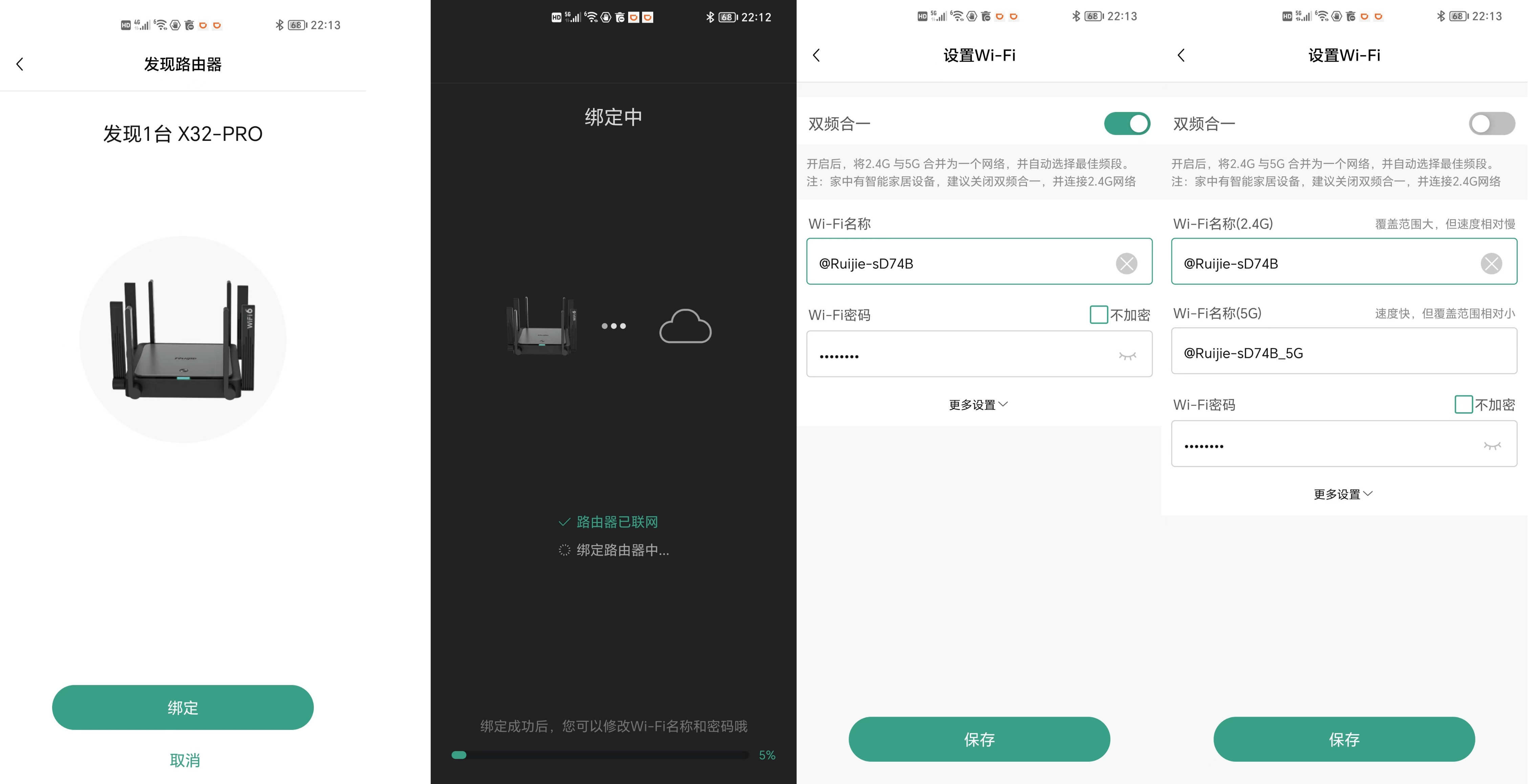 在初始设置中,用户可以选择是分开2.4GHz和5GHz频段,还是合并它们。此外,锐捷X32 PRO还支持独家的MESH技术——一键易联。如果家庭户型较大,可以在每层安装一个路由器,按下一楼主路由器的易联键,其他支持易联技术的路由器就能够快速组网,无需手动断开连接,实现无缝切换,毫秒级的速度。
