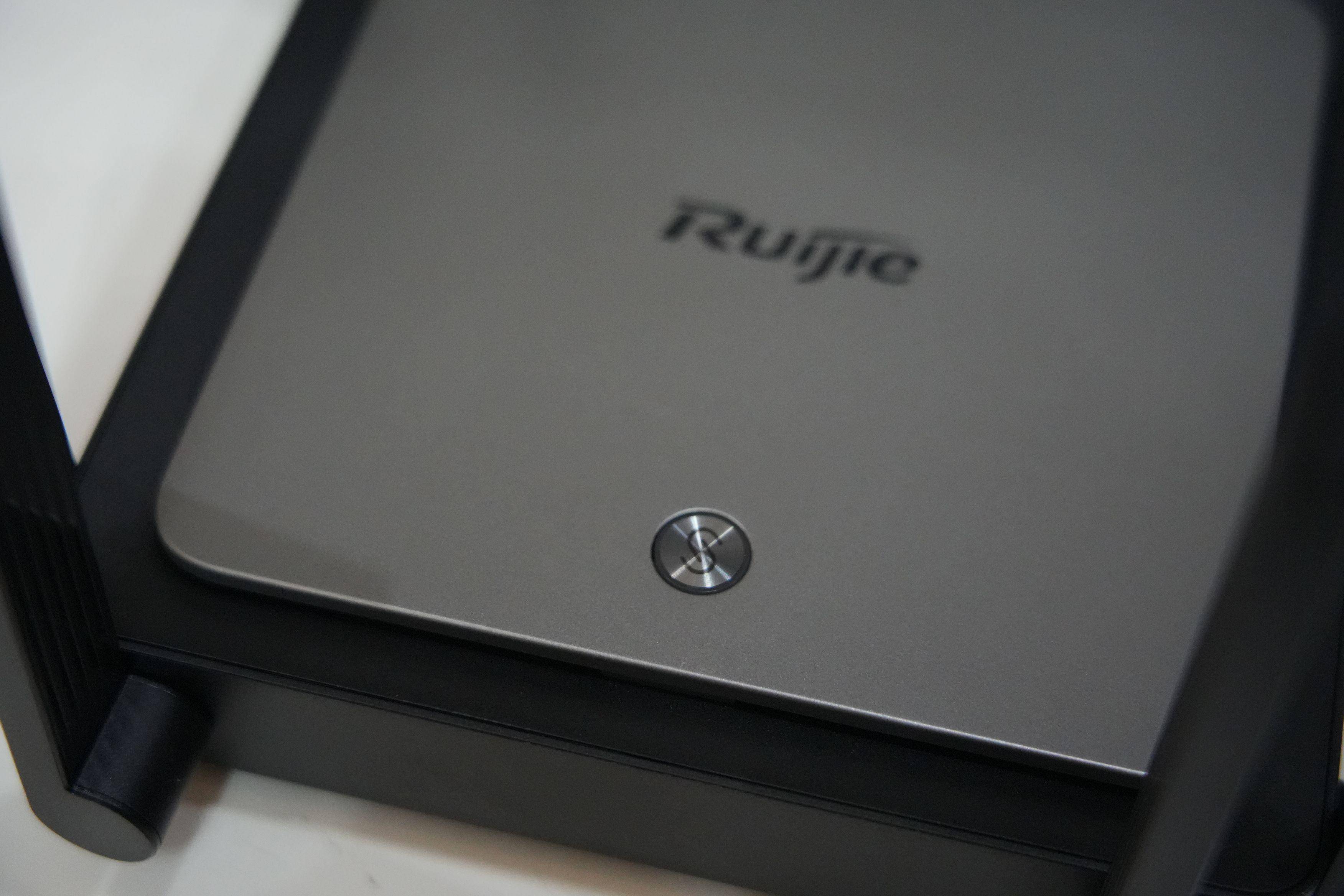 路由器正面中间有锐捷的Logo,下方是易联按键,用于与其他设备进行连接。正前方的指示灯可以显示路由器的状态,不同颜色的灯光代表不同状态。这些设计都使得操作非常直观。
