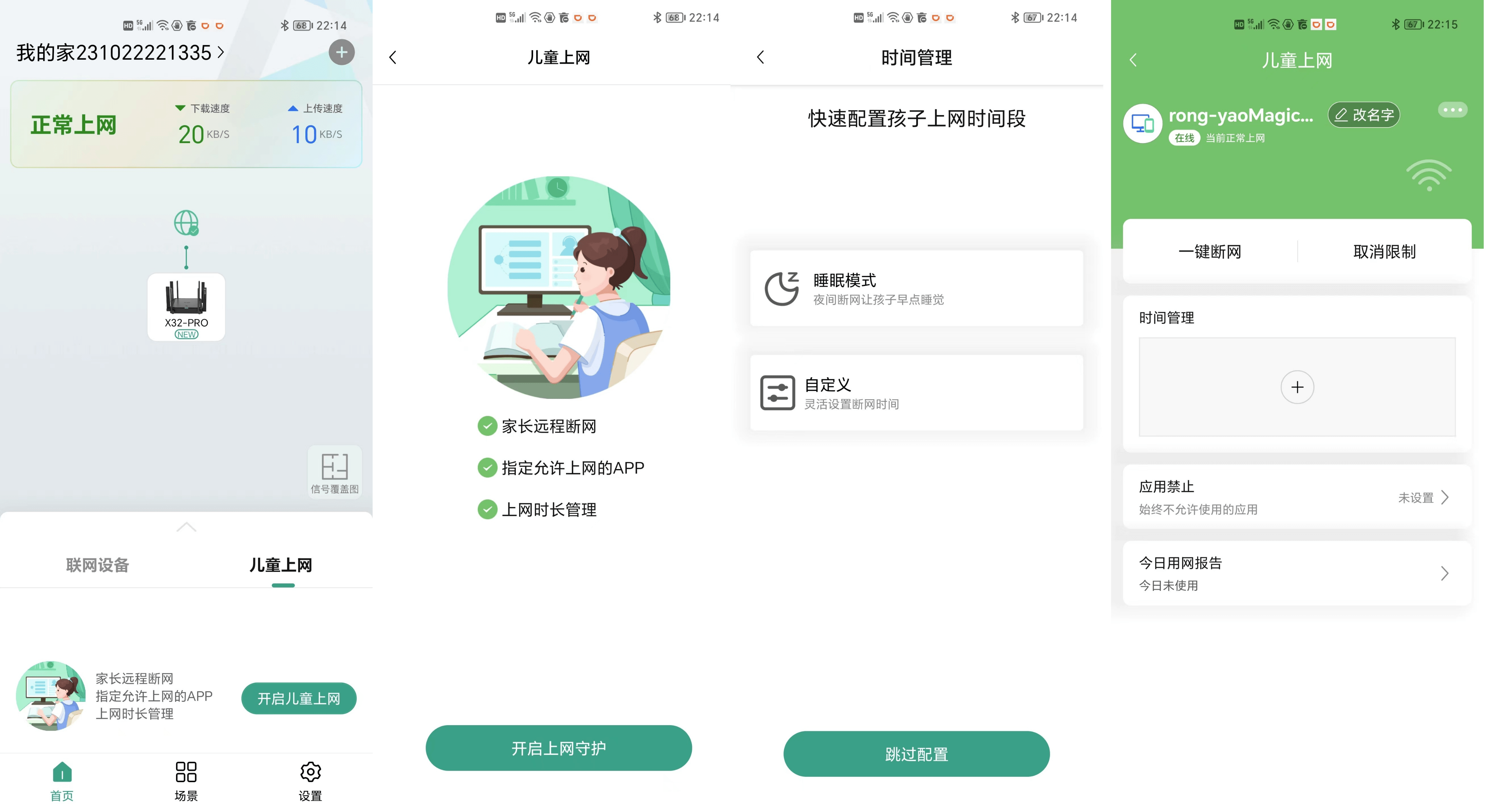 如果家中有小孩,锐捷X32 PRO还提供了上网守护功能,帮助父母更方便地控制孩子的上网行为,避免他们沉迷游戏和动画片。