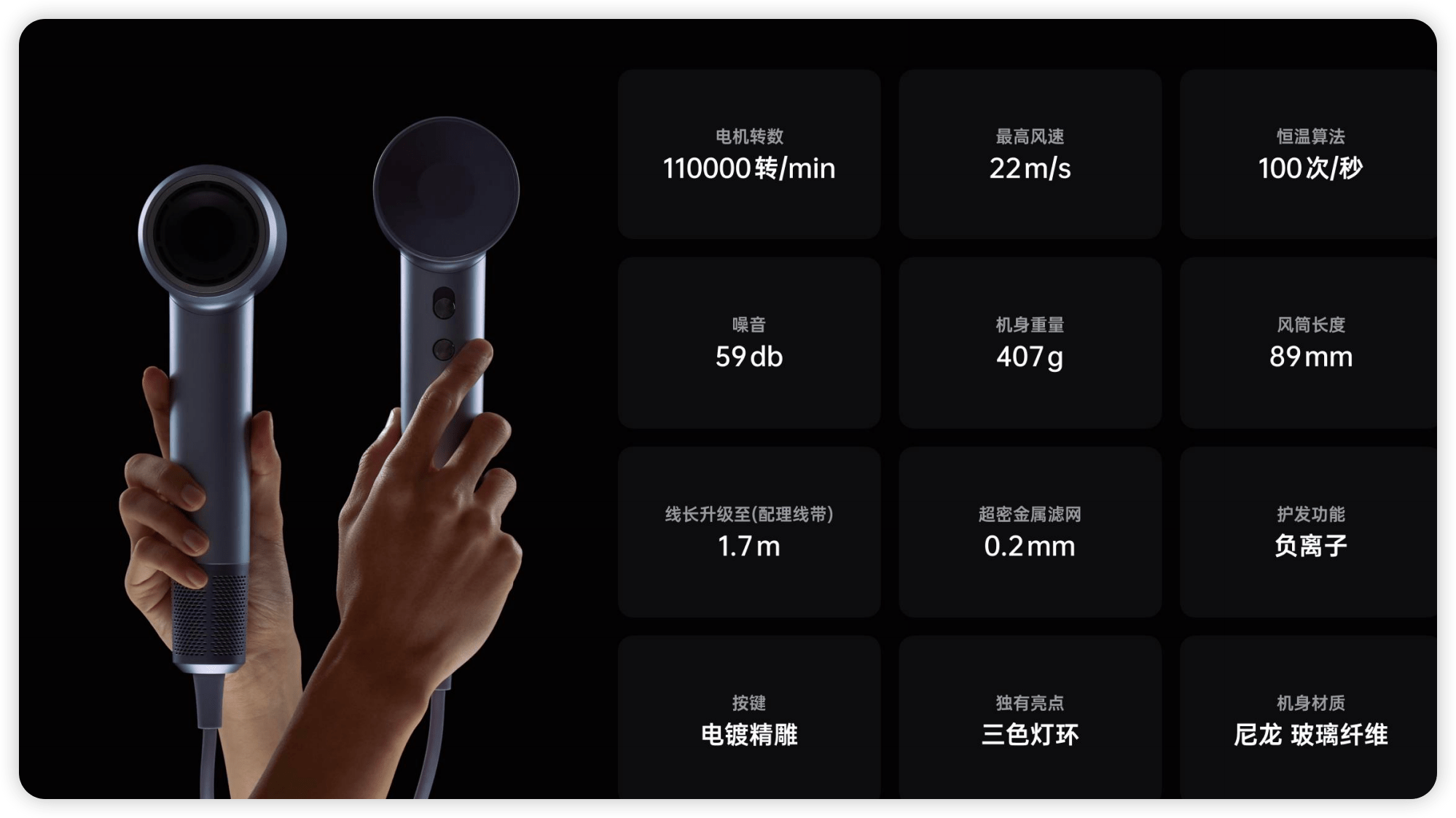 而徕芬高速吹风机LF03在电机方面具有传统吹风机难以媲美的优势。它搭载了高转速达11万转/分的无刷电机,而传统吹风机通常只有2-3万转/分的刷电机。此外,徕芬高速吹风机LF03内置了微处理器智能芯片和温度传感器,能够精确控制吹风温度,使用户能够更加精准地掌控吹干过程,提高了使用效率。