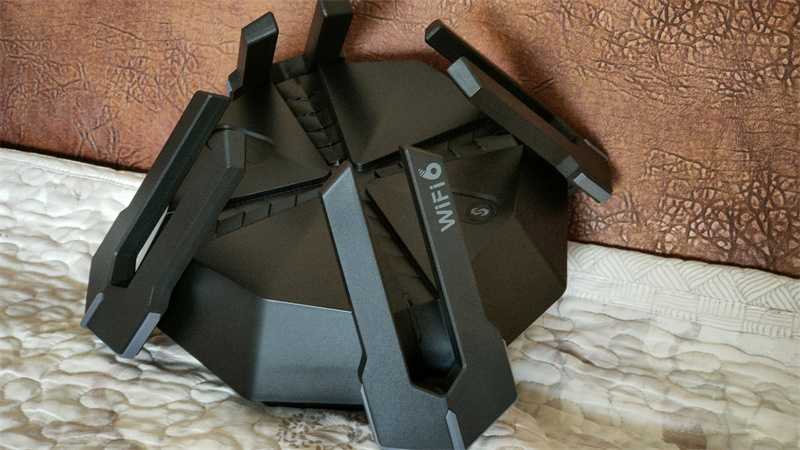因为造型的独特性,天蝎路由器的天线仅能做到向内倾斜45°的合体操作,并且为了能使路由器在工作时2.4G和5G信号都能获得均等的覆盖,每个“蝎钳”天线都个嵌入一组4x4的信号天线,使得路由器在工作时理论上传输速率分别能达到1148Mbps和4804Mbps的速率。