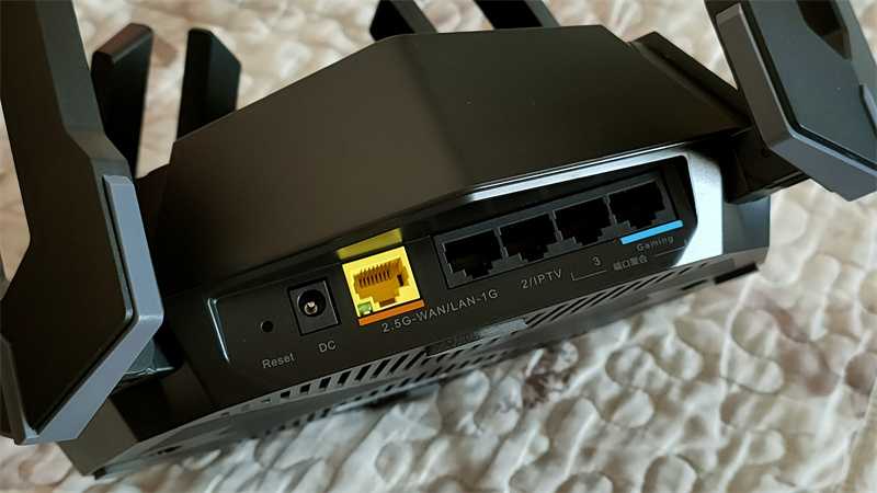 锐捷天蝎电竞路由在接口的设计颇有特色,除常规的复位按钮、DC电源外,黄口色网口为支持2.5G千兆 WAN与1G千兆LAN可调配口,同时1口在特色条件下也可实现WAN/LAN协议变换的接口,为了方便光改桥使用运营商盒子,2口通过设置还可转变为IPTV专属接口,而3、4在特殊模式下还可实现“双网口聚合”的功能,而在普通情况下4口则作为与台式机相连的游戏Gaming专用接口。