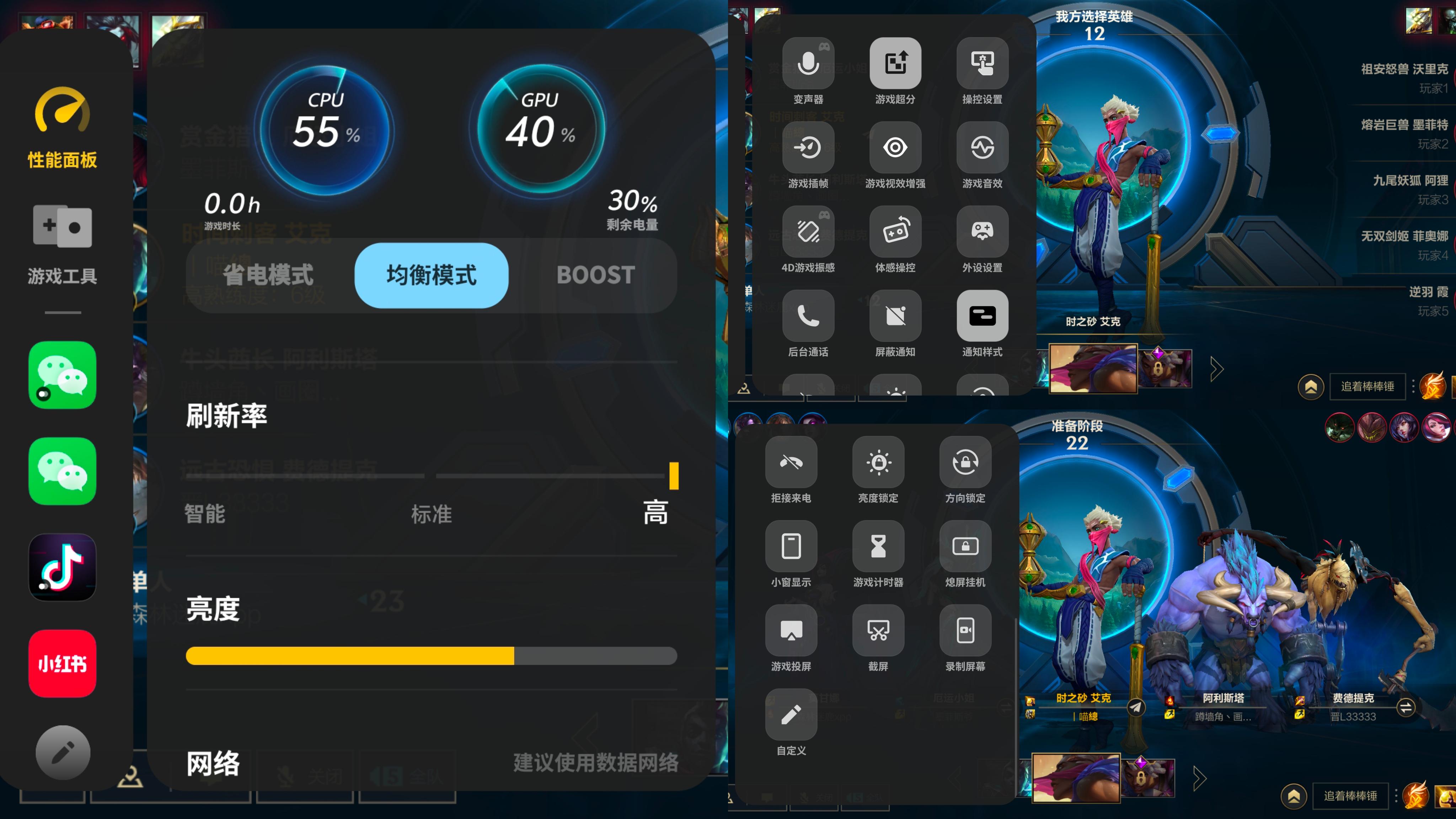当然,体验比参数更重要,以我常玩的游戏英雄联盟来说,由于X100 Pro定位并非游戏手机,默认画面选项不支持120帧与高分辨率同时开启,而游戏魔盒也并未提供超帧超画同开选项,所以就只能以高分辨率+60帧组合来体验。