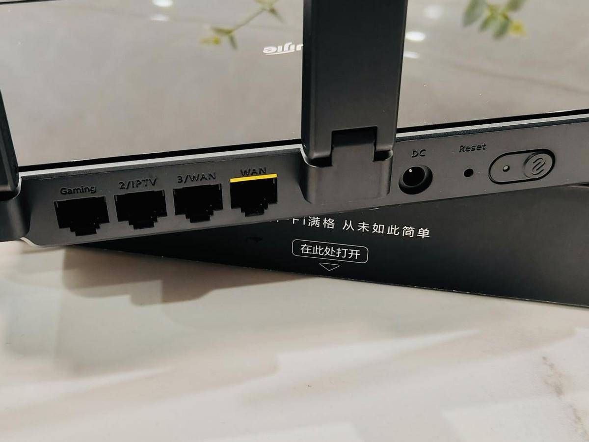路由器机身背面可以看到网线接口、电源孔和功能按键,配备有1个千兆WAN口和3个千兆LAN口,这样的配置足以满足大多数普通家庭无线网使用需求。