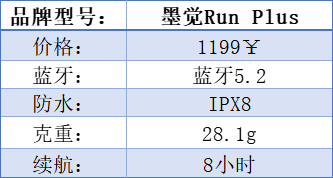对于刚佩戴骨传导耳机的用户来说是可以满足的,但对音质有要求的用户,墨觉这款耳机的音质不如南卡通透,音质整体的感觉会比较偏闷;并且墨觉Run Plus这款蓝牙耳机机身有开孔,长期使用有进水的风险,防水实际只能做到五级。并不适合在水下运动的用户。