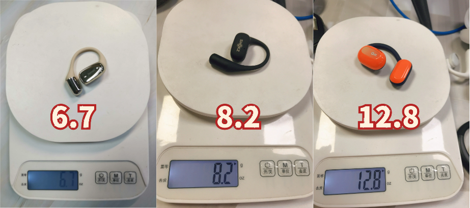 韶音openfit:耳机芯与耳甲腔接触处使用双层零度硅胶,增加接触面积以减少压强,从而提升佩戴舒适度。耳机重量为8.3g,不算重,运动时出现小幅度的晃动,得益于硅胶的防滑性,没有出现掉落等情况,这一点要比入耳式耳机好很多。