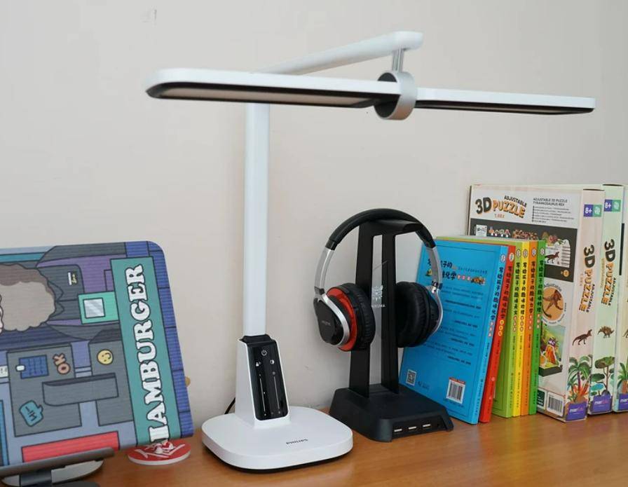 这个台灯的设计新颖,两边都有翅膀一样的设计,而且还可以独立旋转,可以旋转0-270°。左边翅膀可以照亮背景,减少屏幕反光和环境对比眩光;右边翅膀可以照到桌面,给读写作业提供充足均匀的光线,孩子边上网课也可以边写好作业。