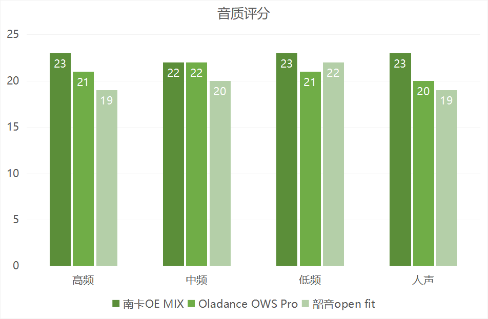 从数据上看其实很明显是OE MIX的重量要小于其他两款,这从根源上减轻了耳朵的负担,韶音的重量也是比较小的,但是Oladance的重量基本没什么竞争性,有点重了。