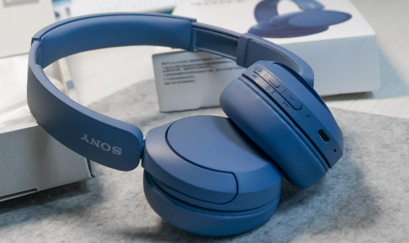 索尼WH-CH520使用了更厚实的惰性海绵耳罩和柔软的合成皮革,对于一只压耳佩戴的耳机来说会很大的提升佩戴的舒适感,头梁部分设计同样是简洁的风格,头梁带伸缩设计,可以适合大部分人的头部尺寸,头梁两侧都有印刷索尼的LOGO,顶部则没有任何标识,耳机比较小巧而且重量不大,佩戴感比较轻松。