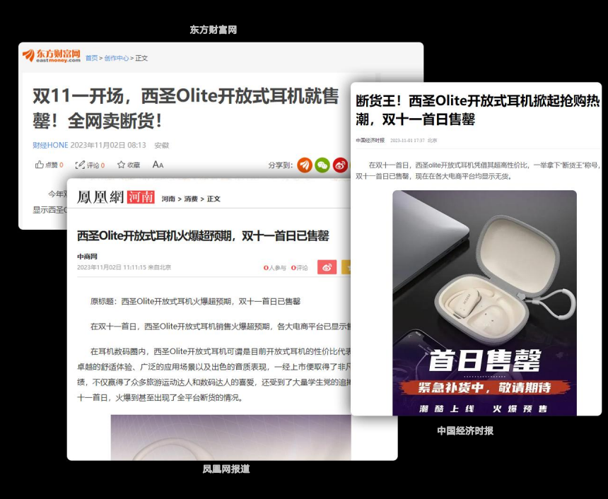 这些出色的实力,使得西圣开放式耳机在市场上大受欢迎,双11一开场,西圣开放式耳机便迅速成为了市场的明星产品,吸引了无数消费者的目光。由于需求量巨大,导致该产品供不应求,火爆到断货。许多消费者都对其赞不绝口,纷纷抢购。可见西圣开放式耳机的火爆程度,赢得了众多用户的青睐!