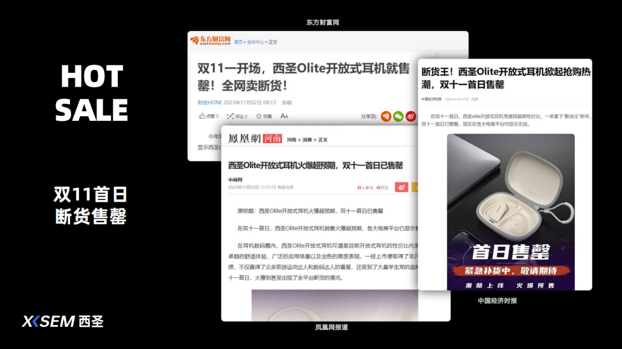 西圣Olite开放式耳机自上市以来,产品以其出色的品质和性能赢得了消费者的一致好评,热度几乎没有减少,无论是线下渠道还是线上渠道,首战双十一的时候,仅需一天,就已经“售罄缺货”。