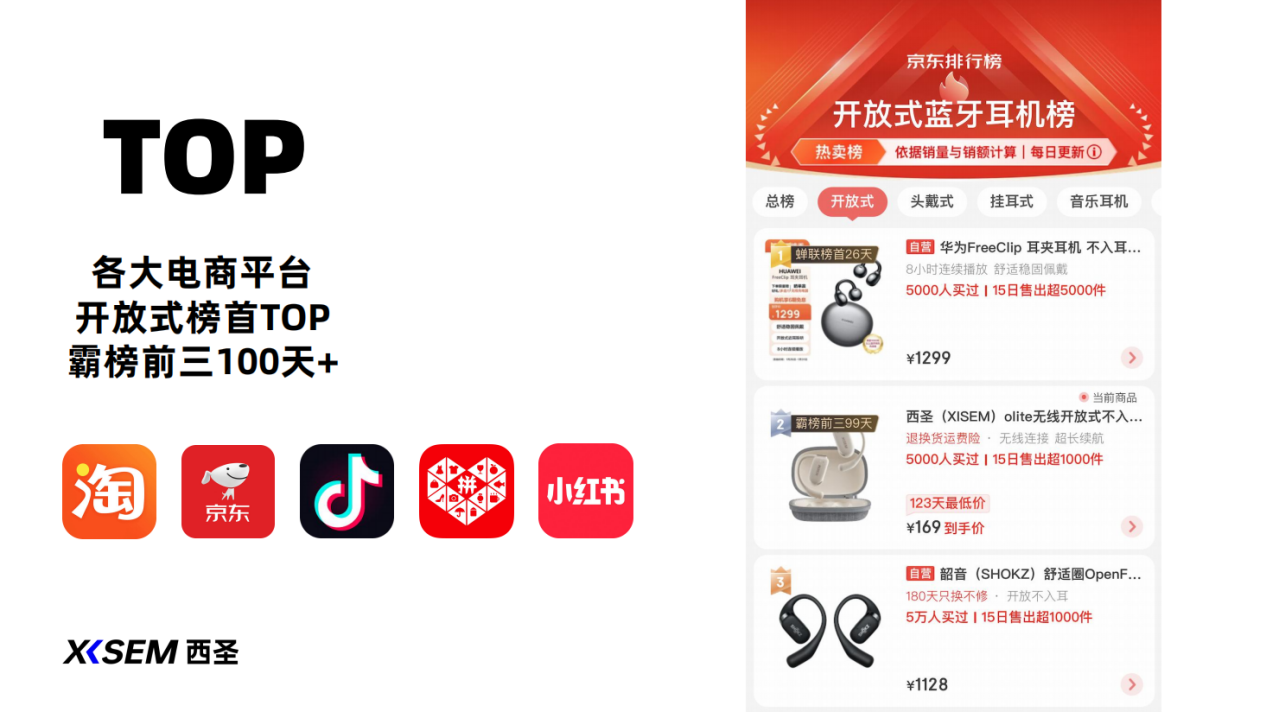 根据排行榜数据显示,排名第一的是华为,其次是西圣,排名第三的则是韶音。这一排名不仅凸显了西圣0lite耳机在市场上的竞争力,也突显了其在消费者心目中的认可度。与华为、韶音大牌并列,进一步印证了西圣Olite耳机在数码科技开放式耳机领域的优越性和竞争力。