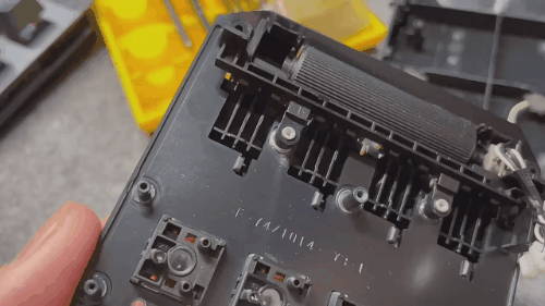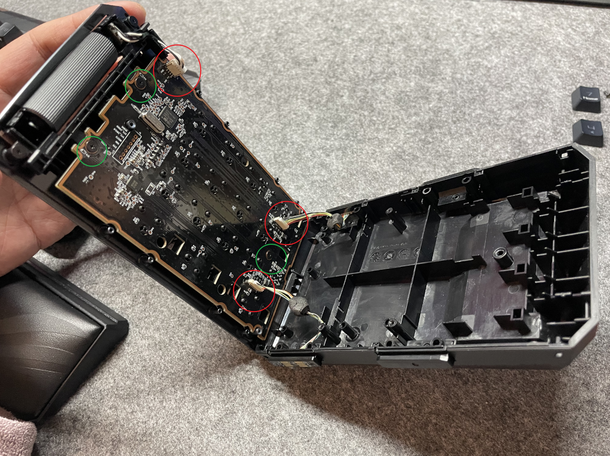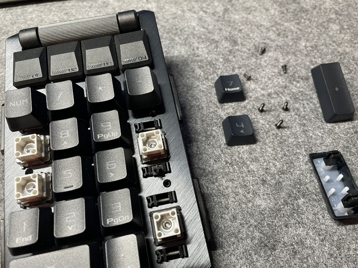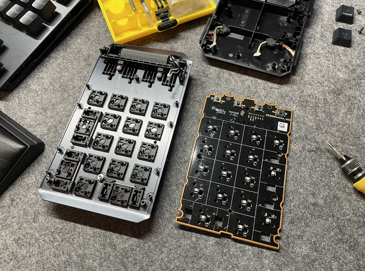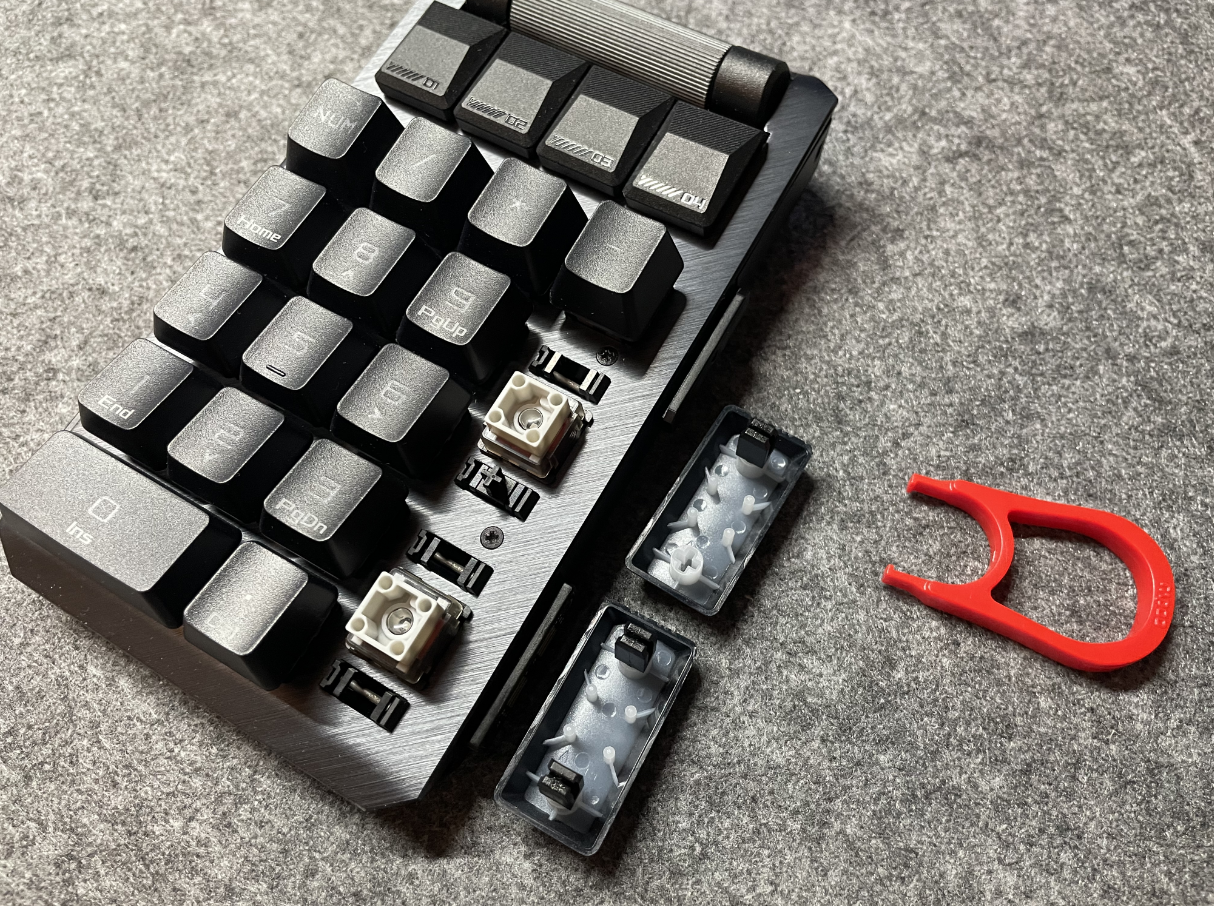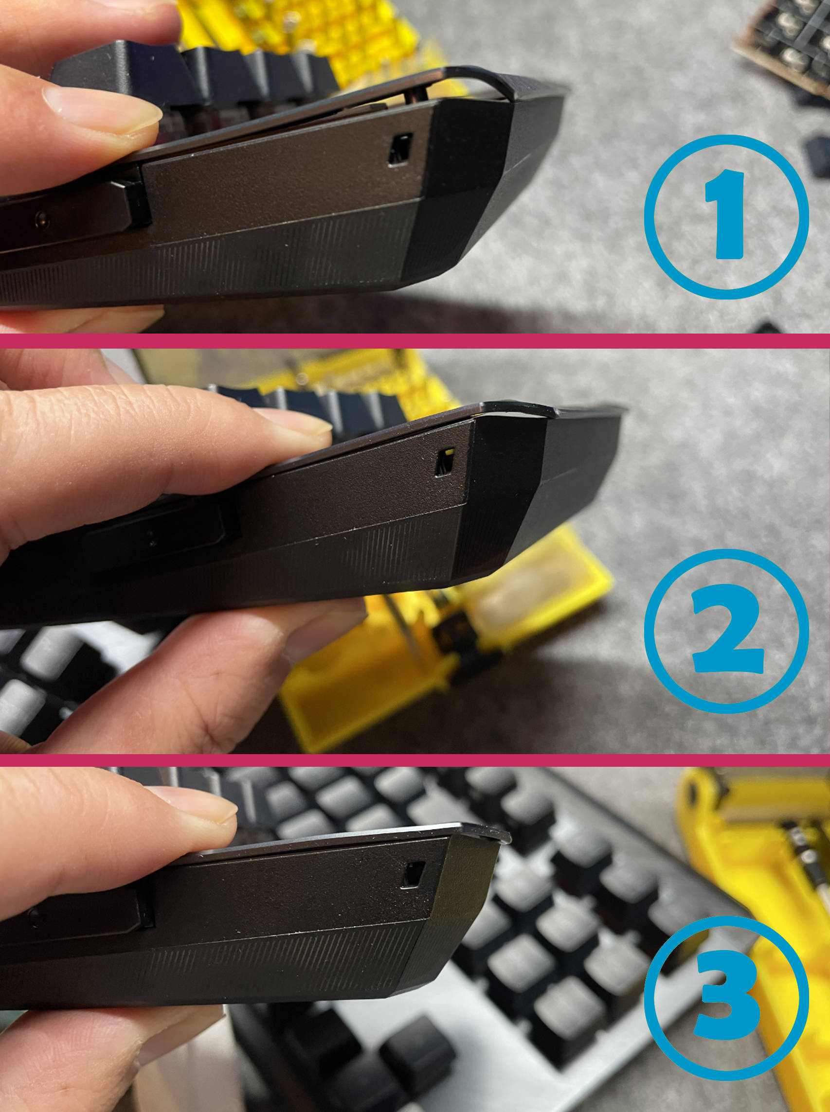 通过观察我发现正面有三颗螺丝,先用拔键器拆掉键帽,然后拧开螺丝。▼▼▼