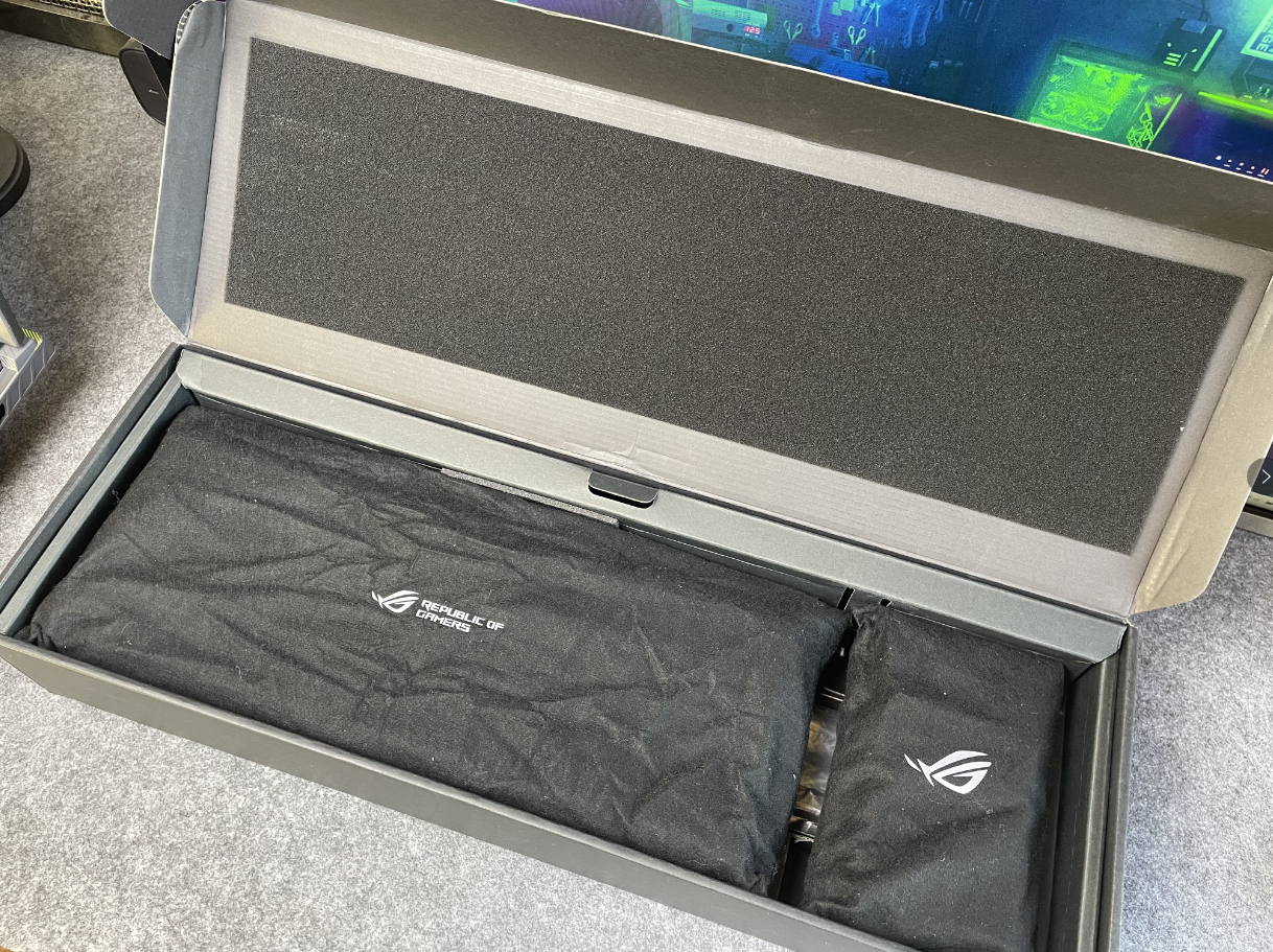 拆包装拆半天,真是包了个严实。ROG 龙骑士2是外面一个卡纸彩盒,里面有加厚加固的黑色瓦楞纸箱,包装满分。▼▼▼