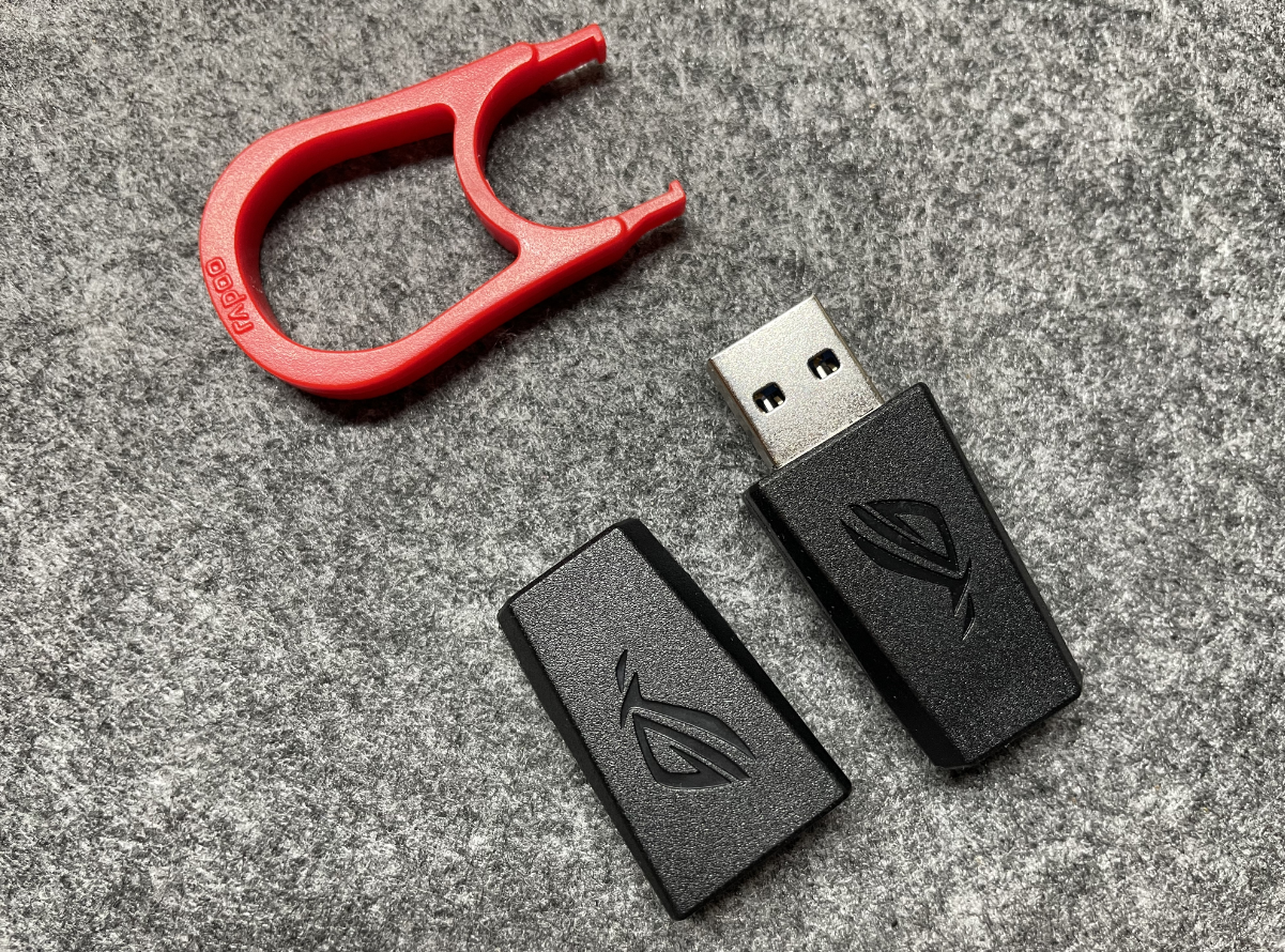 那两个小配件是一个 type-c 转 type-a 的转接头、一个 wireless 接收器的延长器。没有拔键器,拔键器是我雷柏键盘上的。▼▼▼