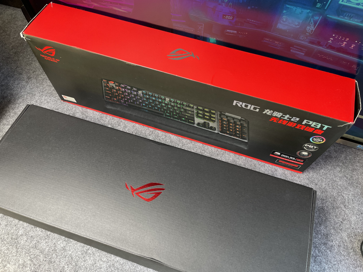 外包装正面标注了接入华硕奥创中心、PBT键帽、自研RX火山口光轴红轴。▼▼▼