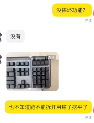 经常需要背着电脑上甲方那里讲设计方案,有时候还得稍微改下图纸。笔记本键盘用不惯,传统104键盘装进书包长一小截,拉链不好拉上。87键配列的没有数字键等于要我的命。就在站里瞎溜达的时候一篇文章中发现了这个ROG龙骑士 2。哎,这个有数字键,还能分离装进书包,还有我喜欢的2U0。价格嘛~看着就哆嗦。作者在评论区点了一句,海鲜市场600块挺多的。我去一瞅还真是,但也不是太刚需,就发了一个收购链接。遵循被本贼惦记上就没跑的规律,写个400块慢收,随缘。然后~~然后~翻车故事就发生了……