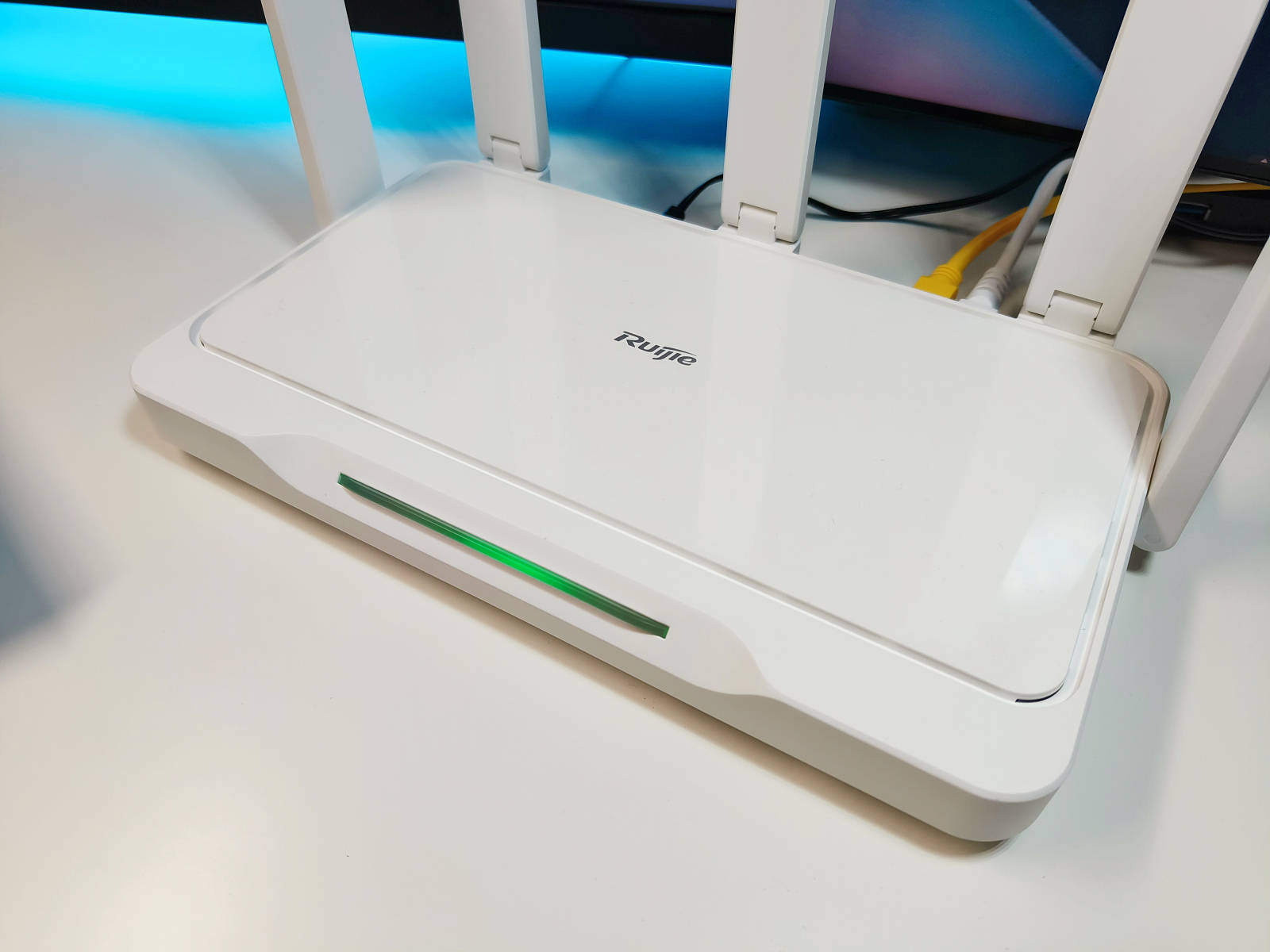 锐捷雪豹电竞路由器是⼀款百元价位的真电竞路由器、支持全场景游戏加速的双频 3000M Wi-Fi6⽆线路由器,路由器采用了白色以对其起名字“雪豹”,长方体外观,路由器正面设有镜面面板,镜面中间印有Ruijie的LOGO,给人的第一感觉就是简约而又小清新。