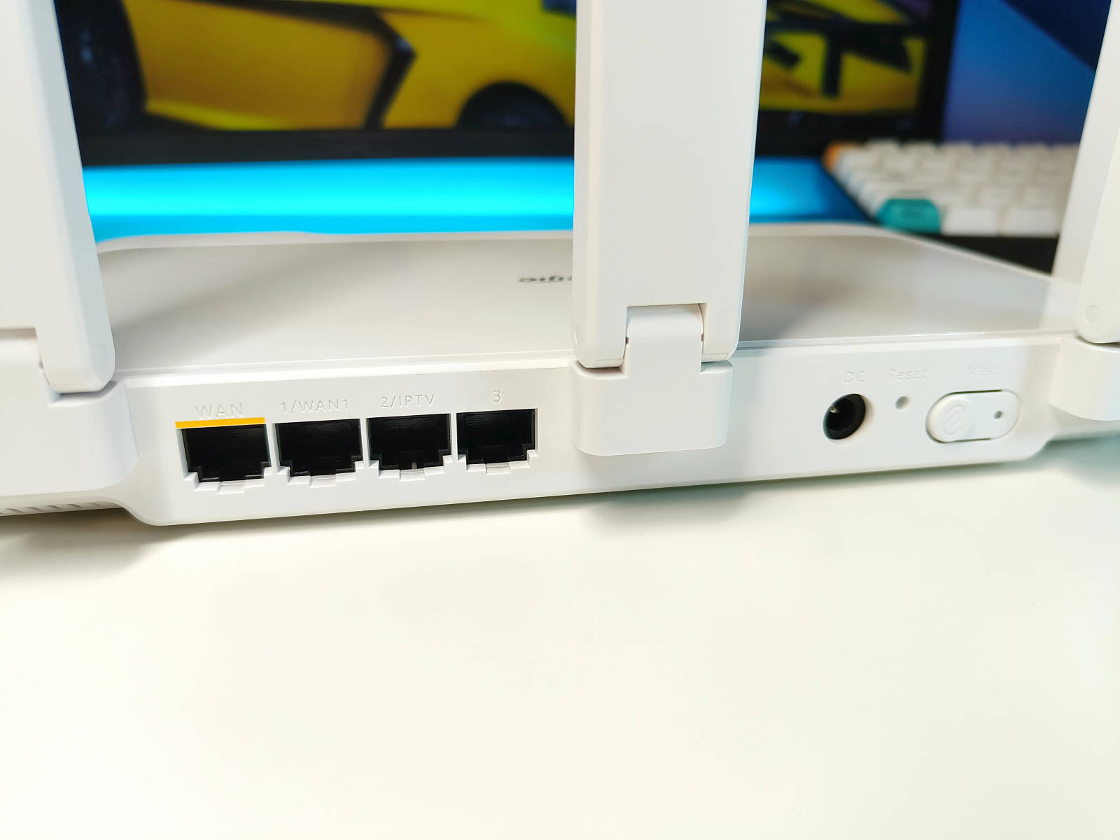 在天线采用了双频3000M⽆线速率,160MHz频宽,4条数据流,⾼增益3振⼦5G天线,内置⾼功率FEM(信号放⼤芯⽚),千兆宽带测速接近900Mbps,穿1墙仍超880Mbps,穿2墙性能后信号依然强劲,测速超过250Mbps,不仅能够保证在游戏场景下,享受到极速的游戏体验,同时也能保证信号强度和覆盖面积的双重要求。