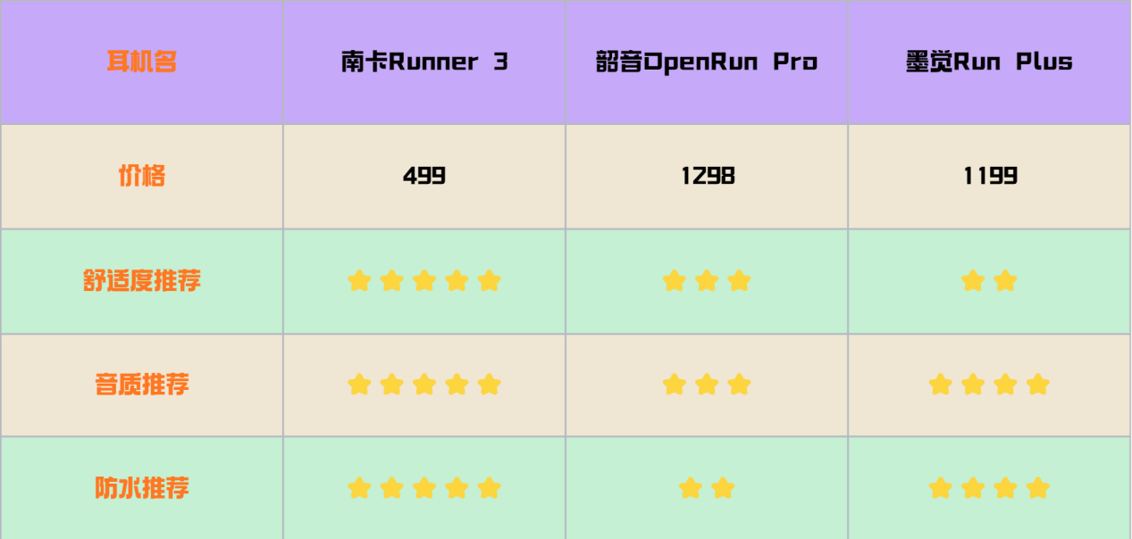 通过这段时间的体验,南卡Runner 3让我在运动时享受到了既有力度又不失细腻的音乐体验;韶音OpenRun Pro在高音细节上略有不足;墨觉Run Plus则在音质表现上较为均衡,在高频下会有细节丢失。