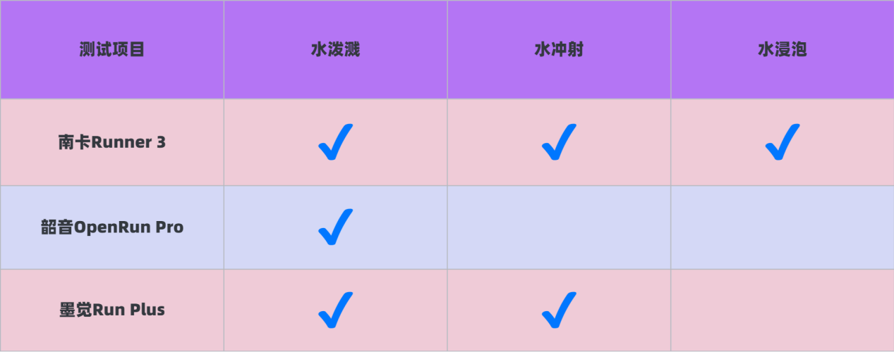 基于这些测试,我认为南卡Runner 3和墨觉Run Plus在防水性能上都表现不错,即使面对各种水环境的挑战也表现优异。相比之下,韶音OpenRun Pro的防水等级略低,不适合水下使用。
