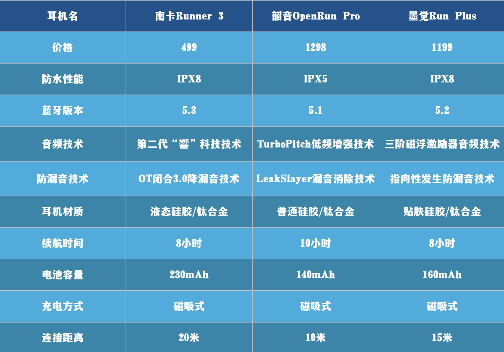 在运动过程中,无论是跑步还是偶尔的户外探险,不可避免地要面对各种水的挑战,所以我对耳机的防水性能相当看重。经过这段时间的使用和测试,我对南卡Runner 3、韶音OpenRun Pro、和墨觉Run Plus在防水性能方面有了更深的了解。