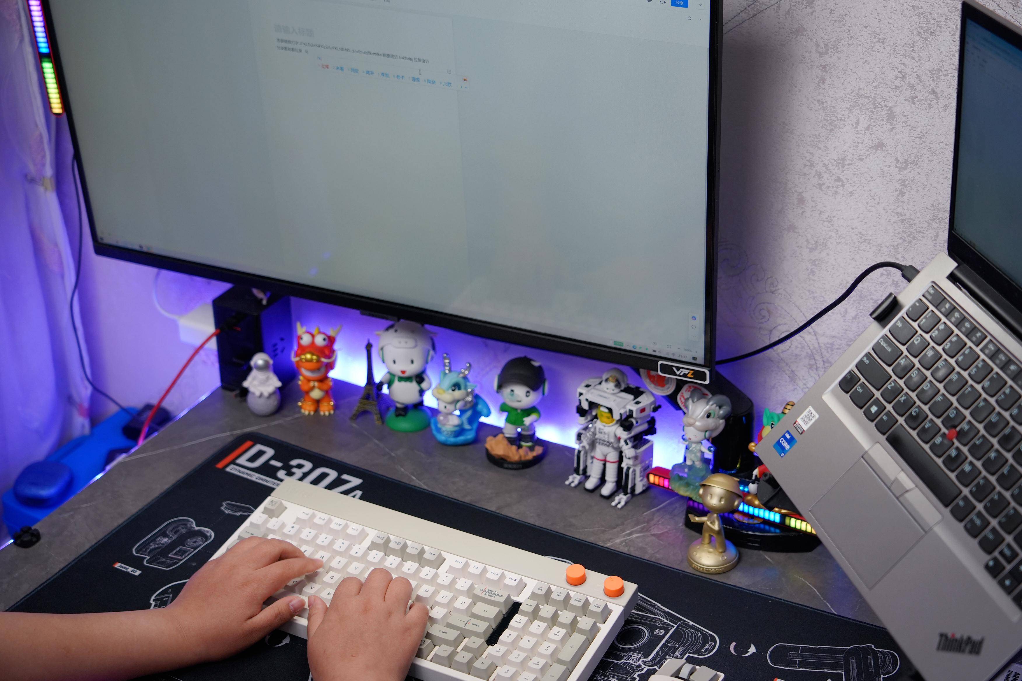 在游戏中,Lofree洛斐小方98三模机械键盘的小方轴响应速度快,手感流畅,没有传统机械键盘粘连的感觉。98键设计给鼠标留下了足够的空间,游戏操作非常顺畅。打字的体验也很舒适,建议使用腕托来缓解手腕疲劳。